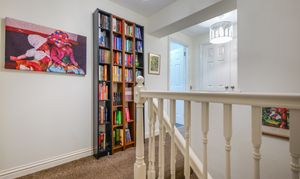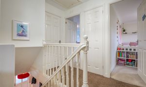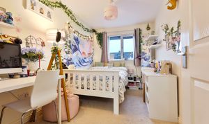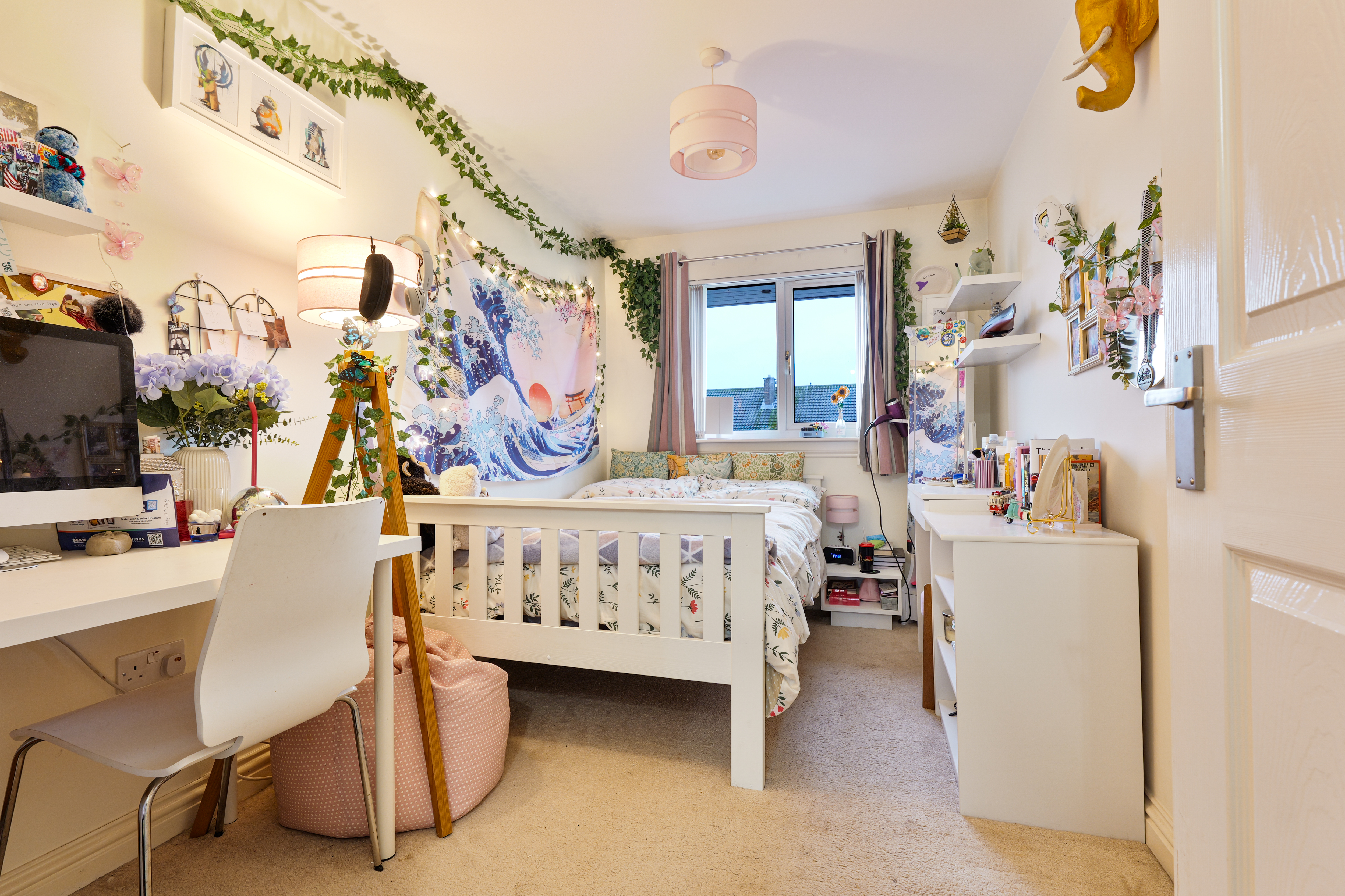 This versatile fourth bedroom is perfect for a home office, snug or guest room. It can comfortably accommodate a small double bed and features neutral decor, providing a blank canvas to suit your personal style. The room also offers over-stair storage cupboard.