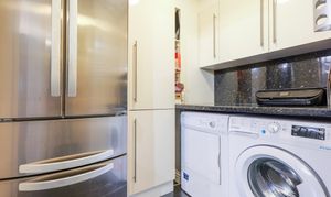A well appointed Utility Room offers ample space for free standing appliances along with practical built-in storage and work-surface area.