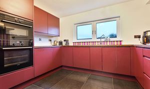 This beautifully designed contemporary kitchen features an extensive range of bespoke fitted cabinetry providing ample storage and a sleek streamlined look. The stylish breakfast bar offers a perfect casual dining or socialising space. A premium Siemens six-ring gas hob sits beneath a modern stainless steel chimney style extractor hood. Eye level Siemens double ovens, with the top oven incorporating a combination microwave function for added versatility. The Kitchen also includes a fully integrated dishwasher completing this impressive and functional culinary space.