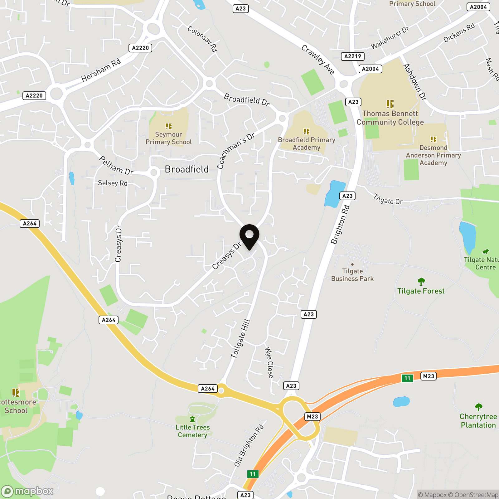 Tollgate Hill is located on the southern side of town, on the outskirts of Broadfield. This is a residential area of property ranging from studio apartments to detached houses and offers easy access to Junction 11 of the M23, the A23 and to the A264 to Horsham. Buchan Country Park and Tilgate Park and Lake are both on the doorstep, great for relaxing strolls on a Sunday afternoon. Bus services from the area are good and Crawley town is readily accessible by car. The nearest railway stations are Crawley, Ifield and Faygate, K2 leisure centre is around the corner off the A23, Horsham town centre is approximately 12 minutes by car and County Mall in Crawley is approximately 10 minutes by car.