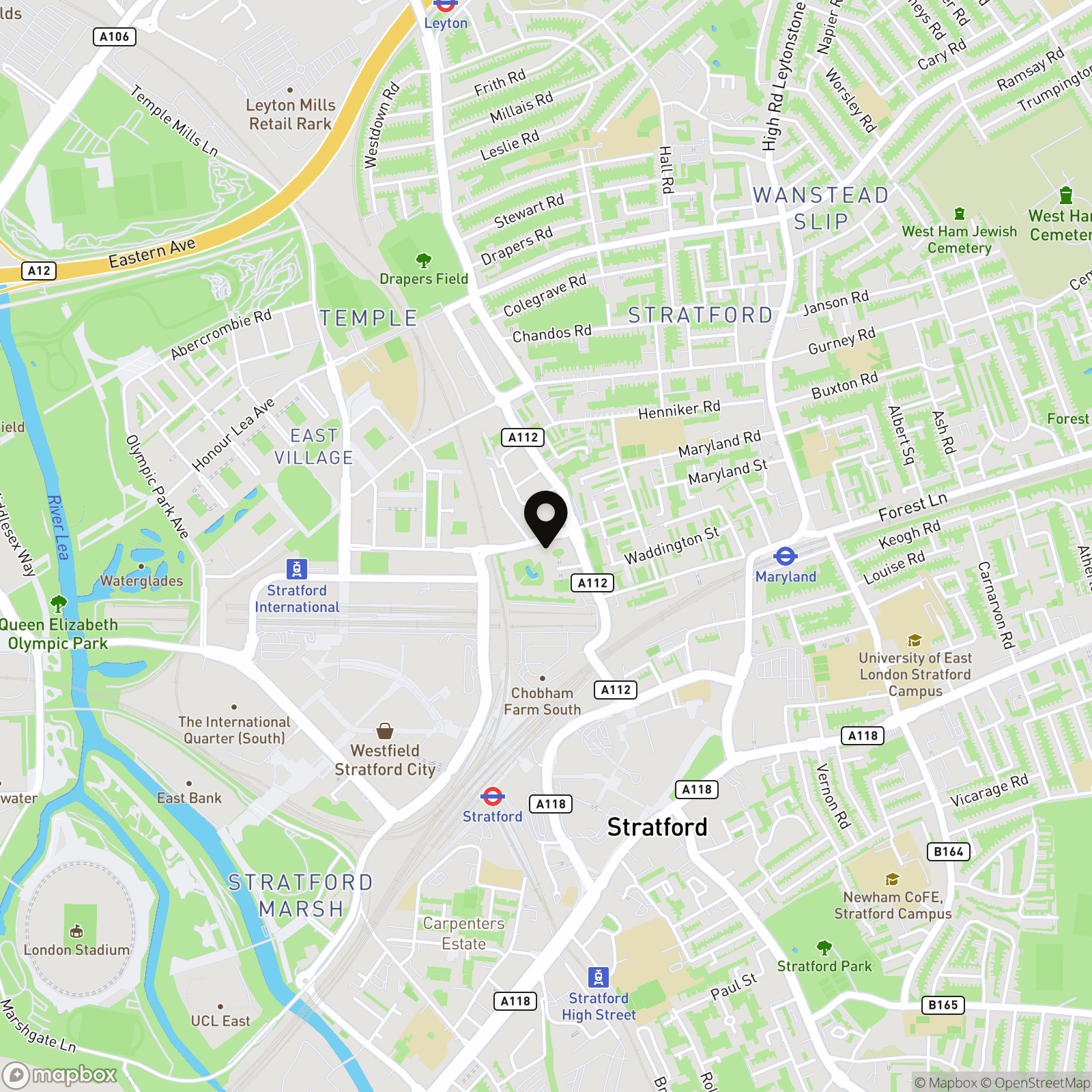 Stratford International Station – approximately 7 minutes’ walk (High Speed services to St Pancras)