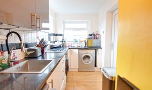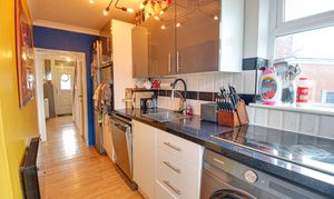 This beautifully presented three-bedroom, one-bathroom semi-detached house offers the perfect blend of contemporary style and practical family living on a large corner plot, positioned on this sought after cul-de-sac. The ground floor welcomes you with a spacious entrance hallway, featuring elegant wooden flooring and striking stained glass around the front door. Guest WC, Two inviting reception rooms provide versatile spaces for both relaxation and entertaining, with highlights including modern fireplaces, large windows flooding the areas with natural light, and stylish built-in shelving and entertainment units. The kitchen is a true standout, boasting sleek modern units, integrated appliances, ample counter space, and bright natural lighting - ideal for home chefs and family gatherings. Upstairs, each bedroom benefits from generous windows and contemporary lighting, ensuring comfort and functionality for all members of the household. The modern family bathroom impresses with an over bath shower, stylish fixtures, a bath-tub, heated towel rail, and contemporary tiling, creating a luxurious and practical space. Main bedroom benefits from en suite with modern tiling.