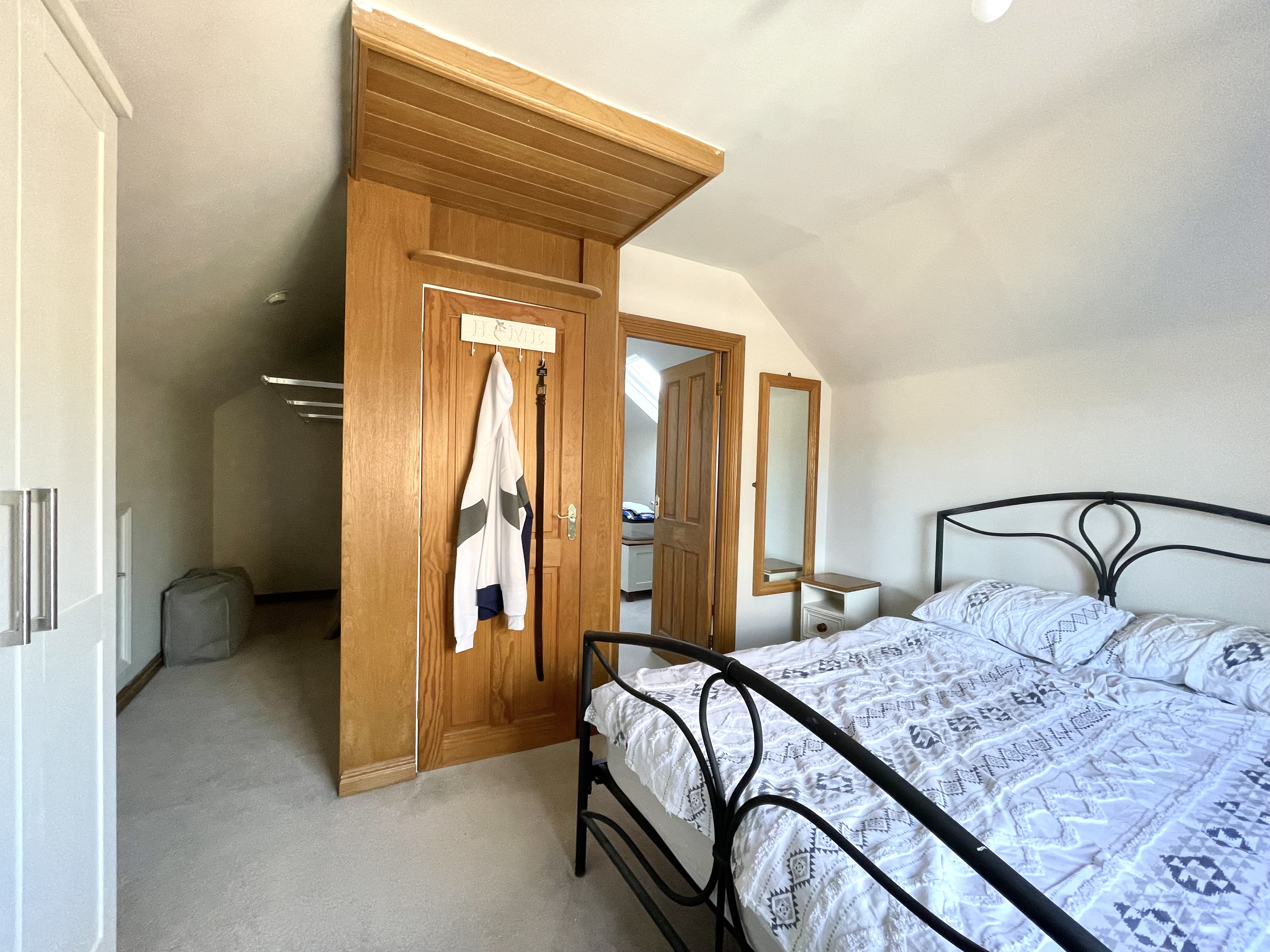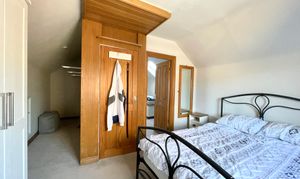 A double room with a pvcu double glazed window to the gable, there is a ceiling point, central heating radiator, fitted wardrobe and to one side there is a walk in wardrobe which is 10'9" x 3'2" and has an inset ceiling spotlight, fitted ironing rail and access to the eaves.