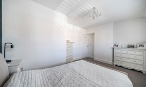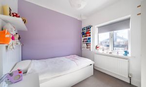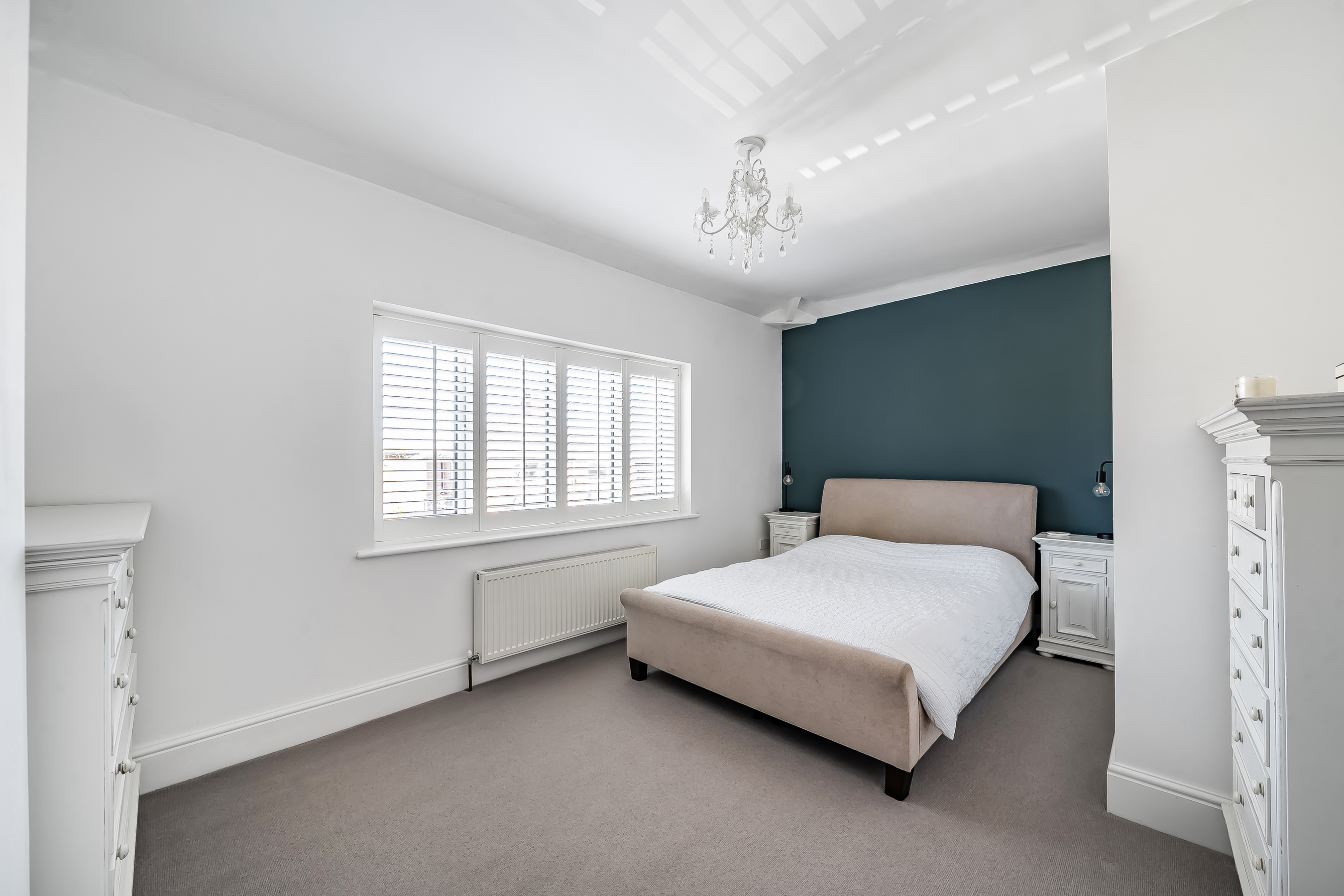 Upstairs, the principal bedroom is a large and welcoming double with ample space for wardrobes and furniture. Two further single bedrooms provide flexibility, ideal as children’s rooms, home offices, or dressing rooms. A stylish modern bathroom completes the first floor, featuring a full-size bath with overhead shower.