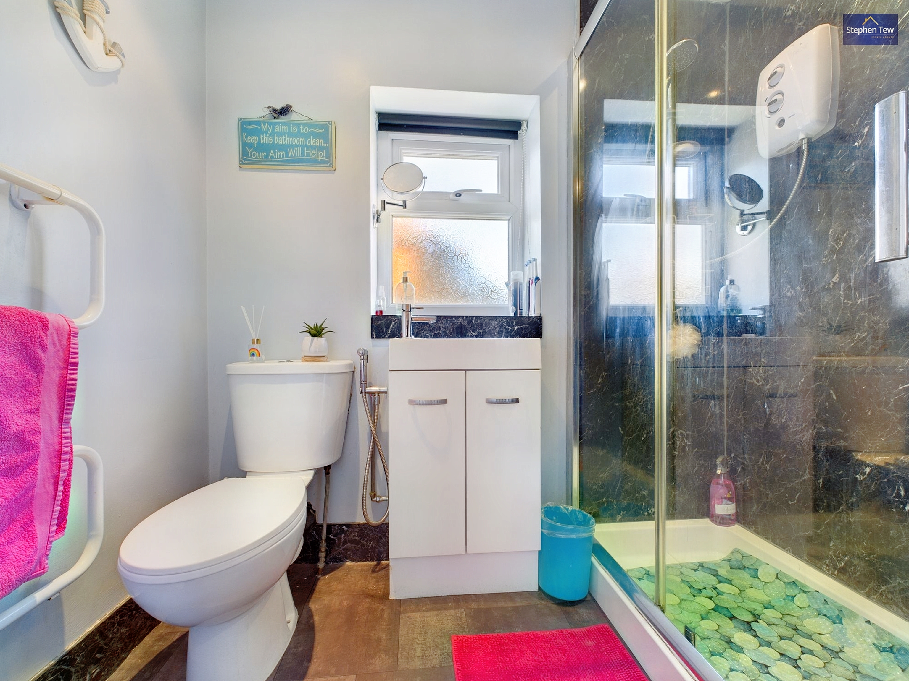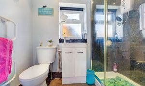 Fitted with a three-piece suite, comprising shower enclosure, wash hand basin with storage beneath and low flush WC. Heated towel rail and UPVC double opaque glazed window to the rear elevation.