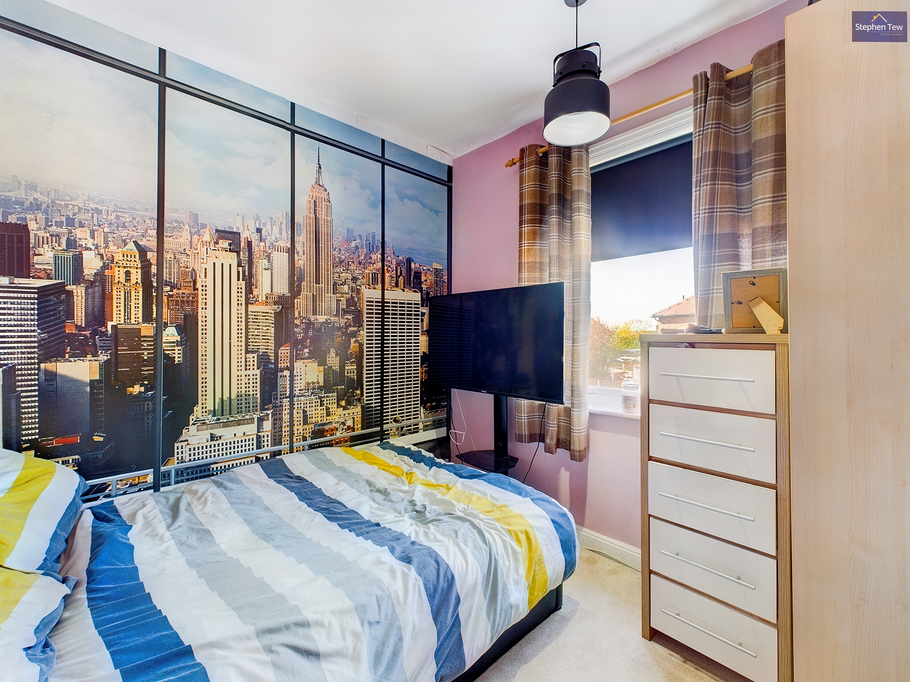 Fitted with a range of wardrobes, radiator and UPVC double glazed window to the front elevation.