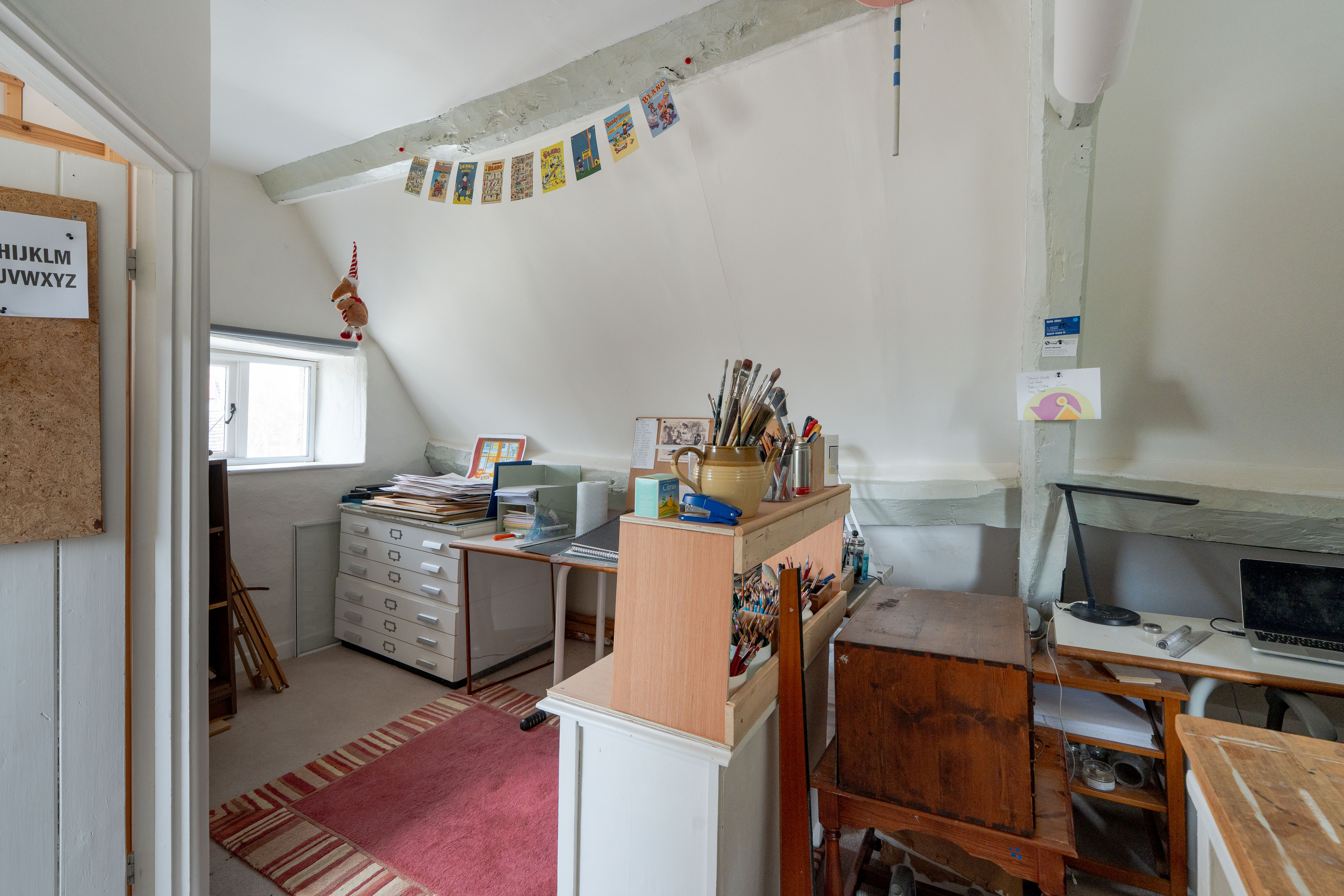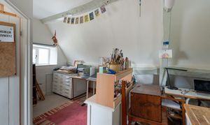 - Three well-proportioned bedrooms with fitted storage, including a versatile top-floor room currently used as an art studio with washroom.