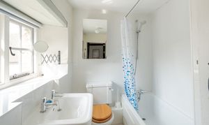 Subtle period detailing continues across the first and second floors, where there are three well-proportioned bedrooms, each with fitted storage, along with a family bathroom. One of the bedrooms occupies the entire second floor and, thanks to its excellent natural light, it has recently been used as an art studio with a separate washroom. However, it would lend itself to a variety of uses, including reinstatement as a principal bedroom.