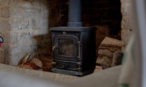- Characterful principal reception room with a substantial stone fireplace, wood-burning stove, and deep-set window seat.