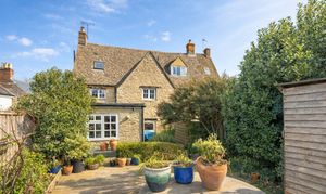 - Elevated position on a quiet lane, with a honey-hued Cotswold stone façade and timber detailing.