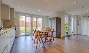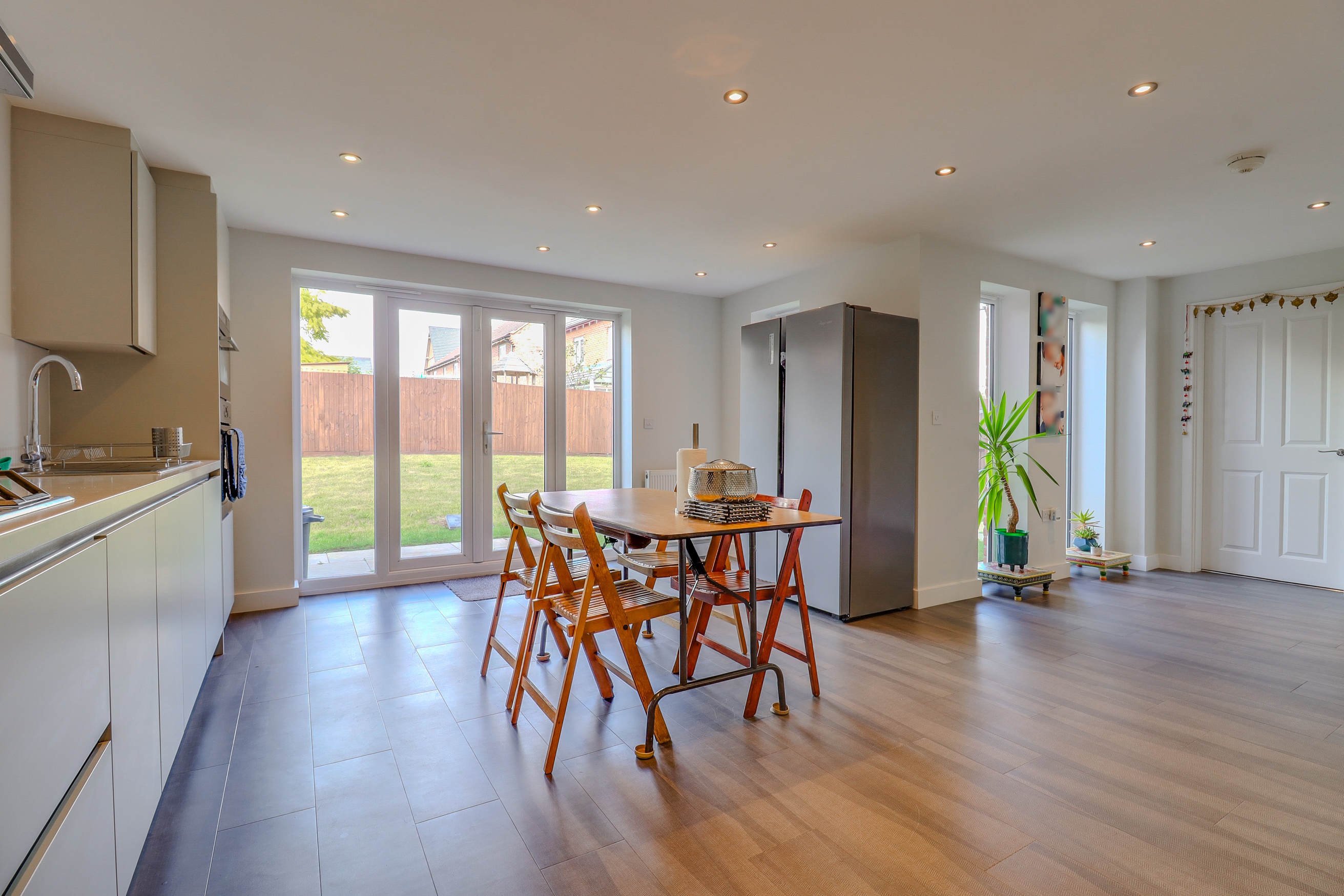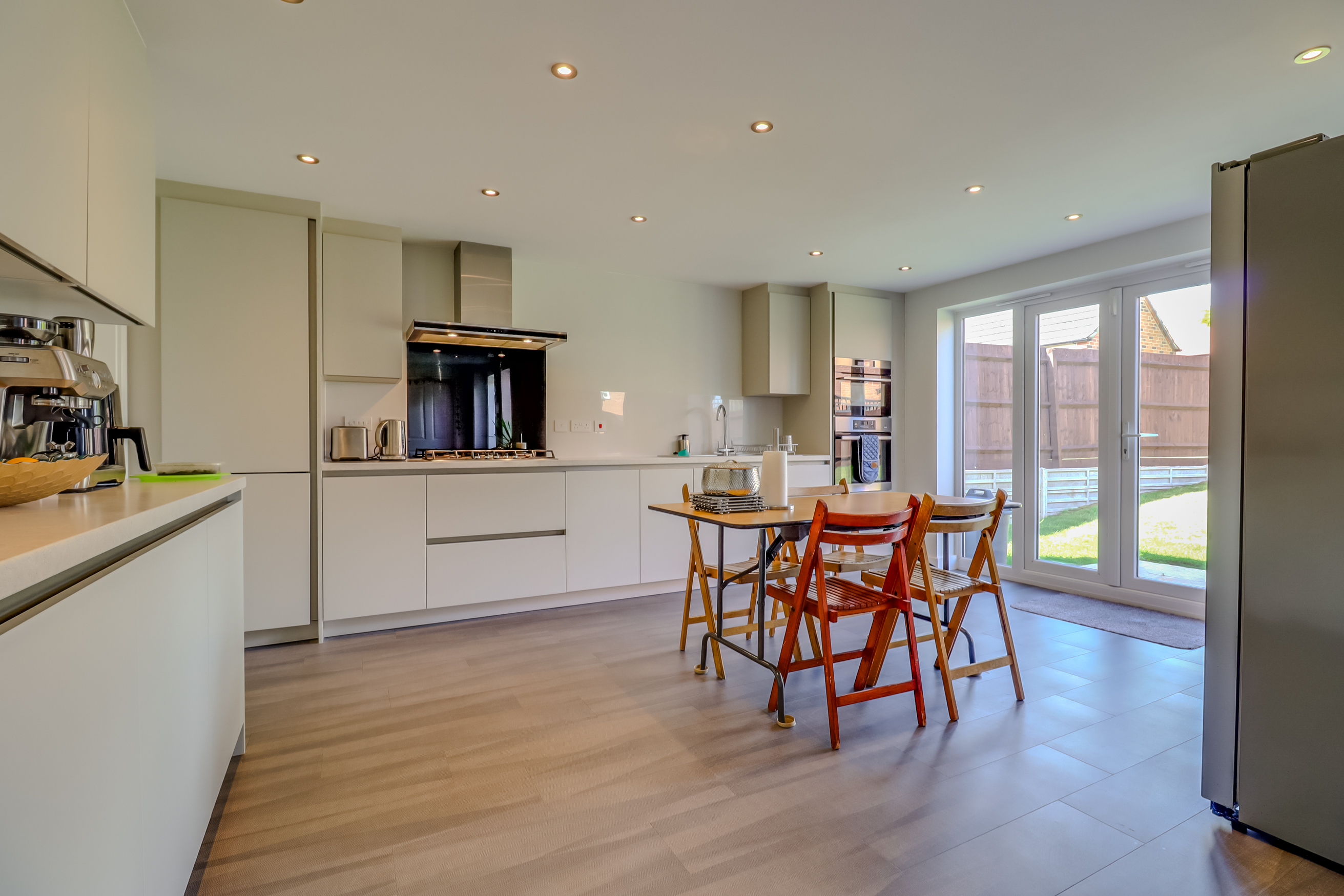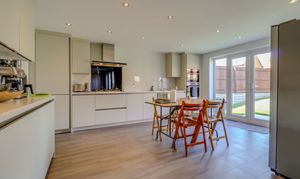 The internal accommodation comprises in brief; a large and welcoming entrance hall with a staircase rising to the first floor landing and a downstairs WC off. A set of double doors leads through to a good sized, cosy lounge. A further door from the hallway leads into a stunning living/dining kitchen with the kitchen area being superbly fitted with a range of contemporary handleless wall and base units with premium work surfaces and a selection of quality fitted appliances. A set of French doors lead out to the gardens and the living/dining area has full height windows. There is a useful utility room off the kitchen from which there is a door leading to the double integral garage. Completing the ground floor accommodation is a large study/second reception room which is accessed from the living kitchen.