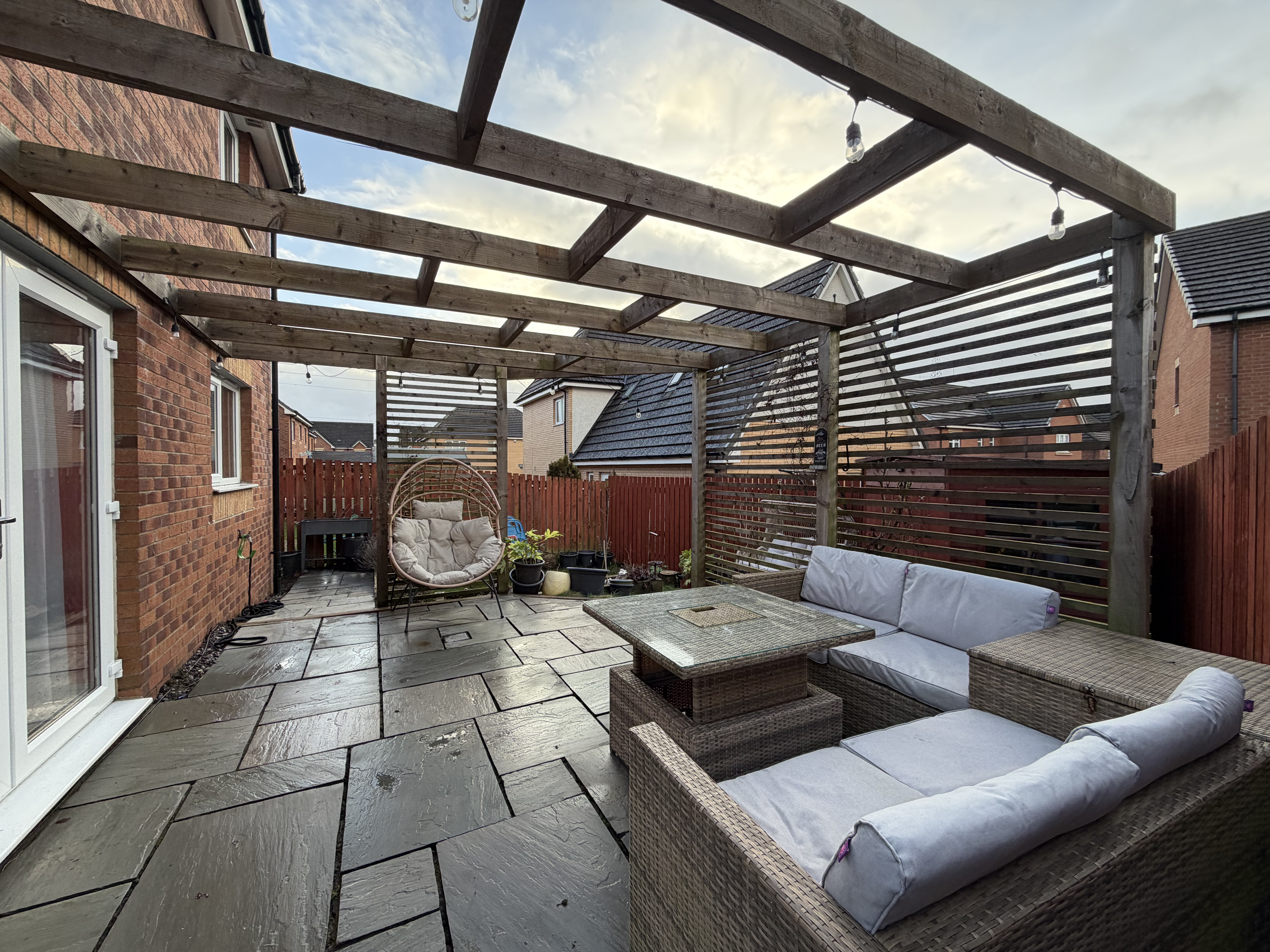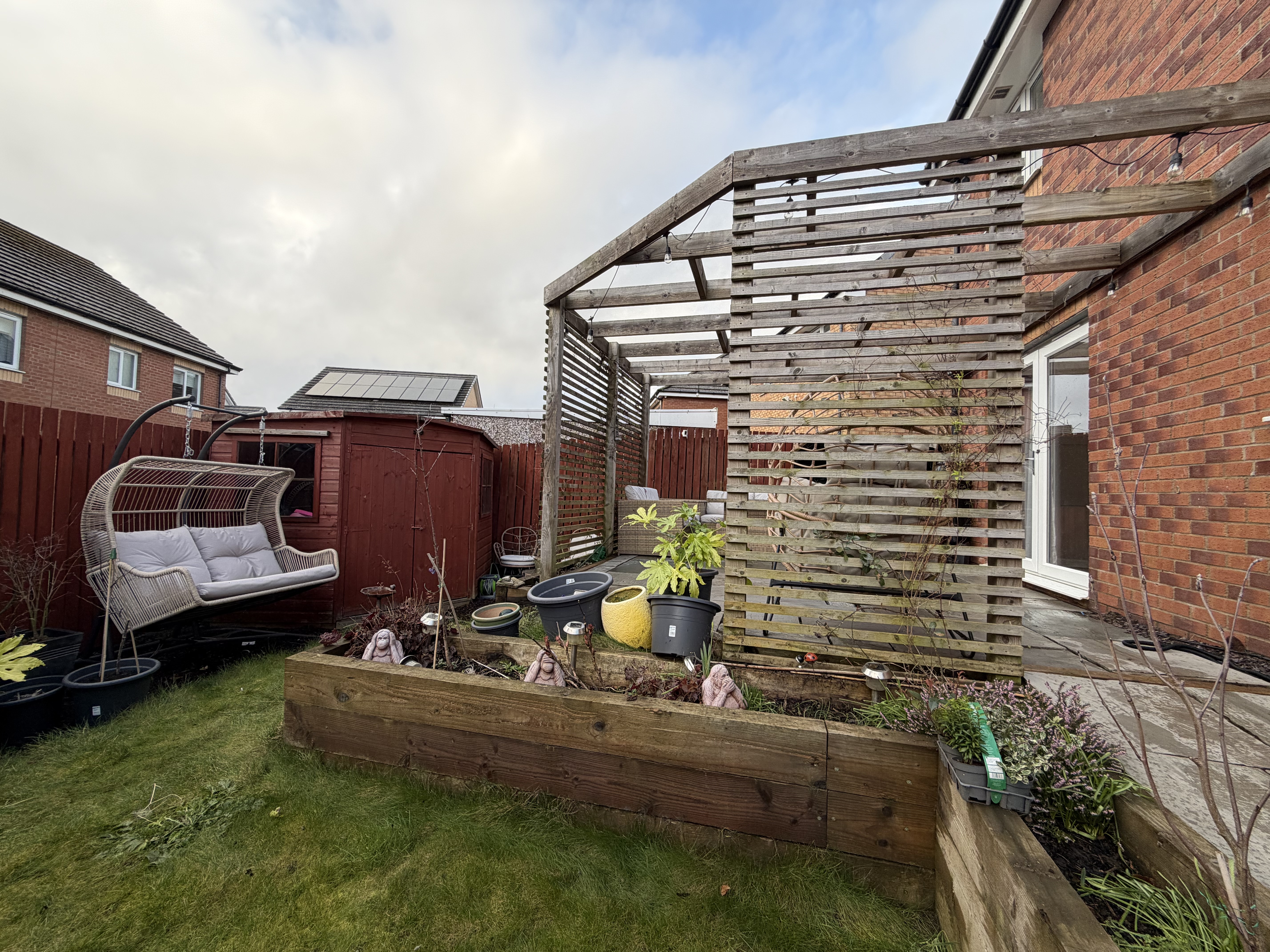 Out back is an impressive garden which includes a secluded patio area, large shed, summerhouse, fire pit and even a swing round the other side! To the front of the property next to the monobloc driveway, there is a vegetable garden which provides raised beds where an array of home grown delights flourish.