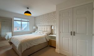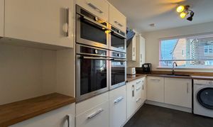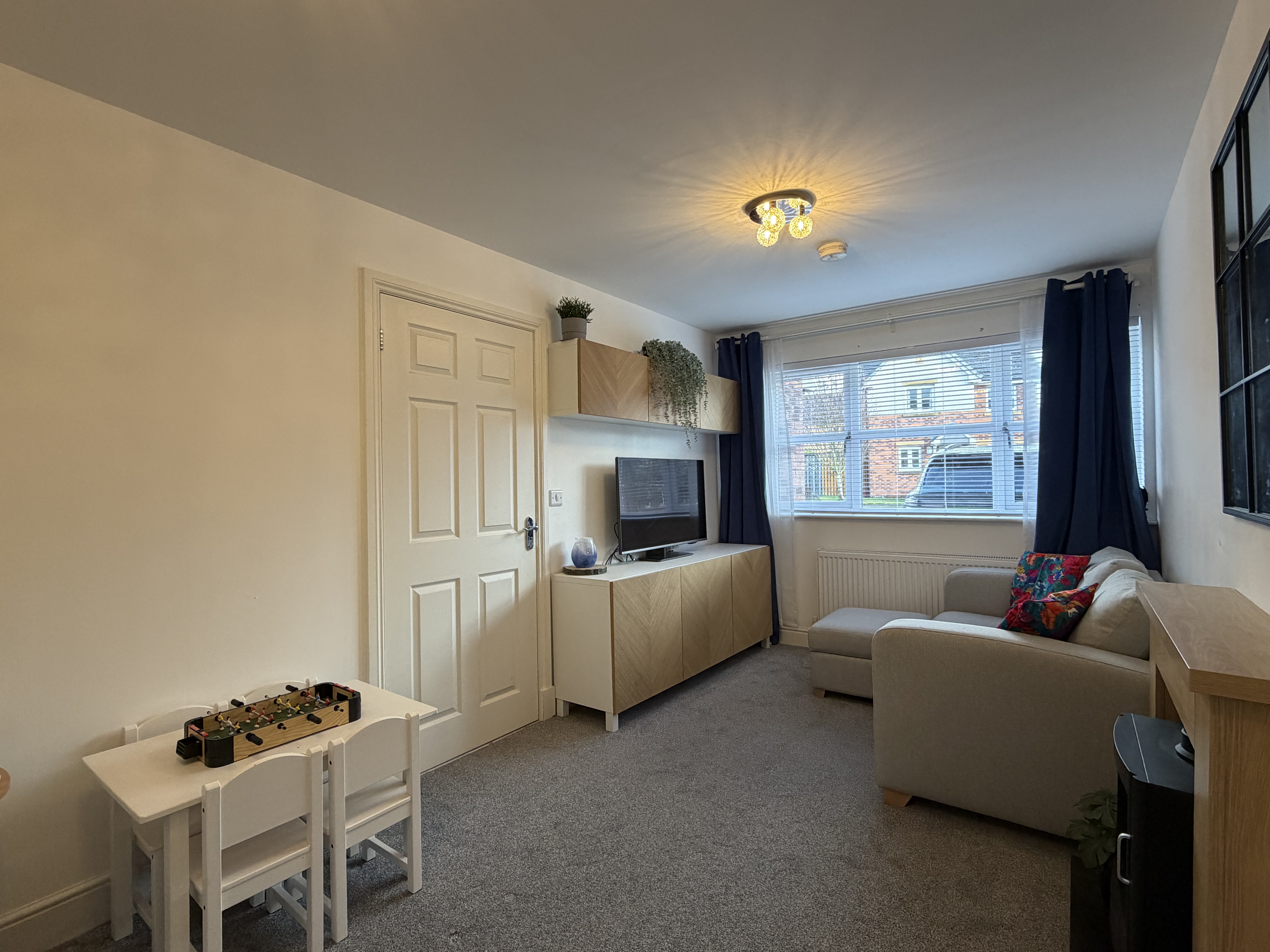 A spacious hallway welcomes you into this wonderful modern family home, the generous living and dining room is flooded with natural light and boasts excellent storage solutions, while French doors provide a seamless transition to the garden (perfect for entertaining and relaxing). The contemporary kitchen is a true highlight, featuring an impressive range of integrated appliances, including two ovens, two microwaves, a dishwasher, washing machine, and an American-style fridge freezer, catering to the needs of any home chef. A thoughtfully converted garage now offers a versatile family room, ideal for play, relaxation, or a home office, and a convenient downstairs WC adds to the practicality of the ground floor layout.