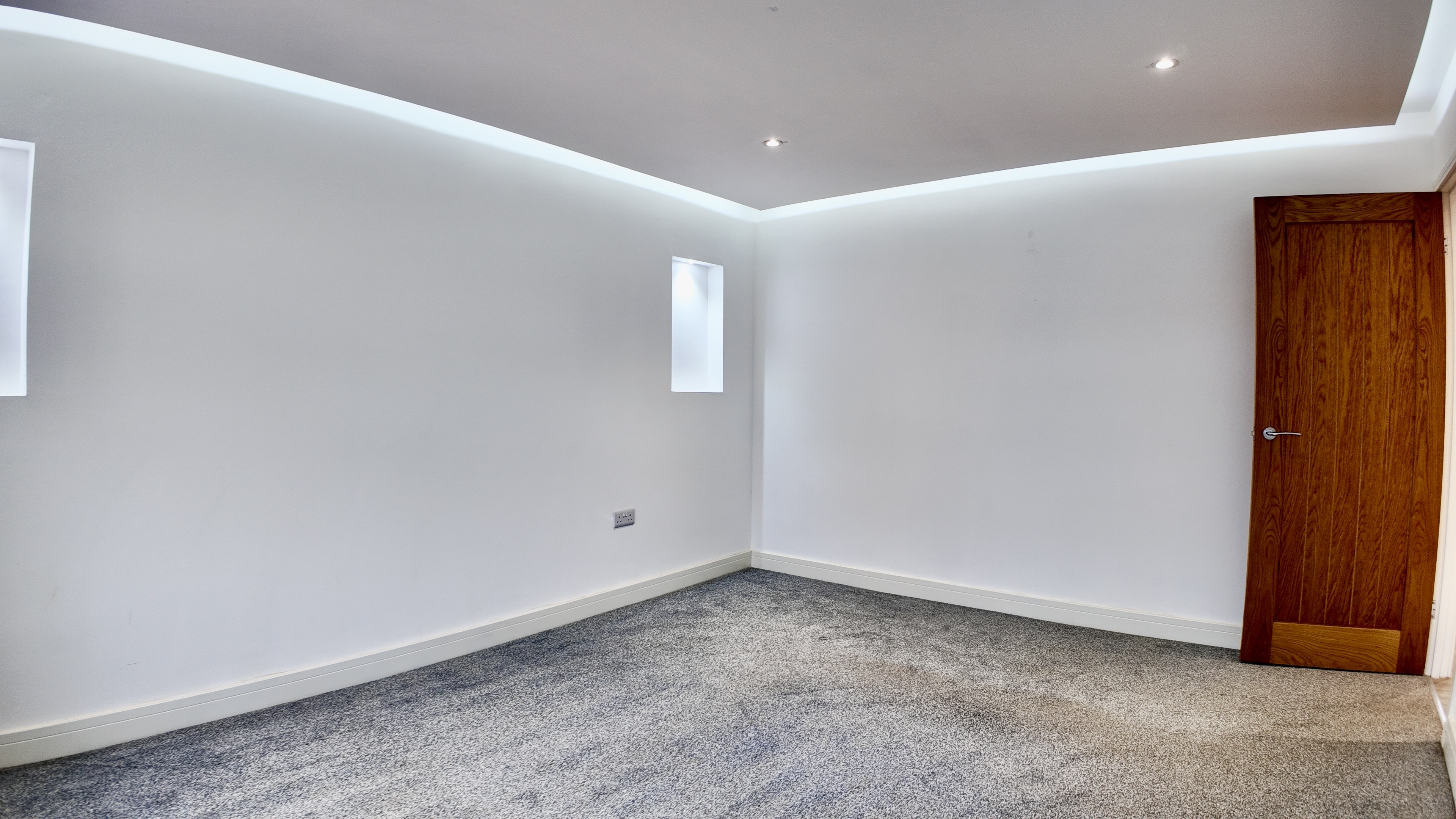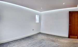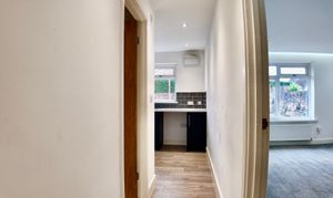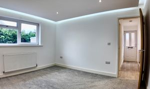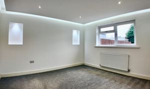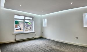 Step inside and you are greeted by a bright and inviting hallway, featuring sleek wooden flooring, abundant natural light, and comfortable radiator heating. The spacious reception room boasts modern recessed lighting, plush new carpeting, and neutral decor, making it a versatile space for relaxing or entertaining. Large windows throughout flood the property with day-light, enhancing the airy, open feel and providing garden views from several rooms.