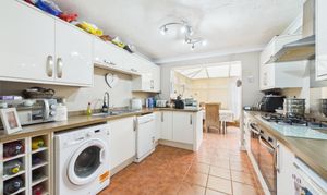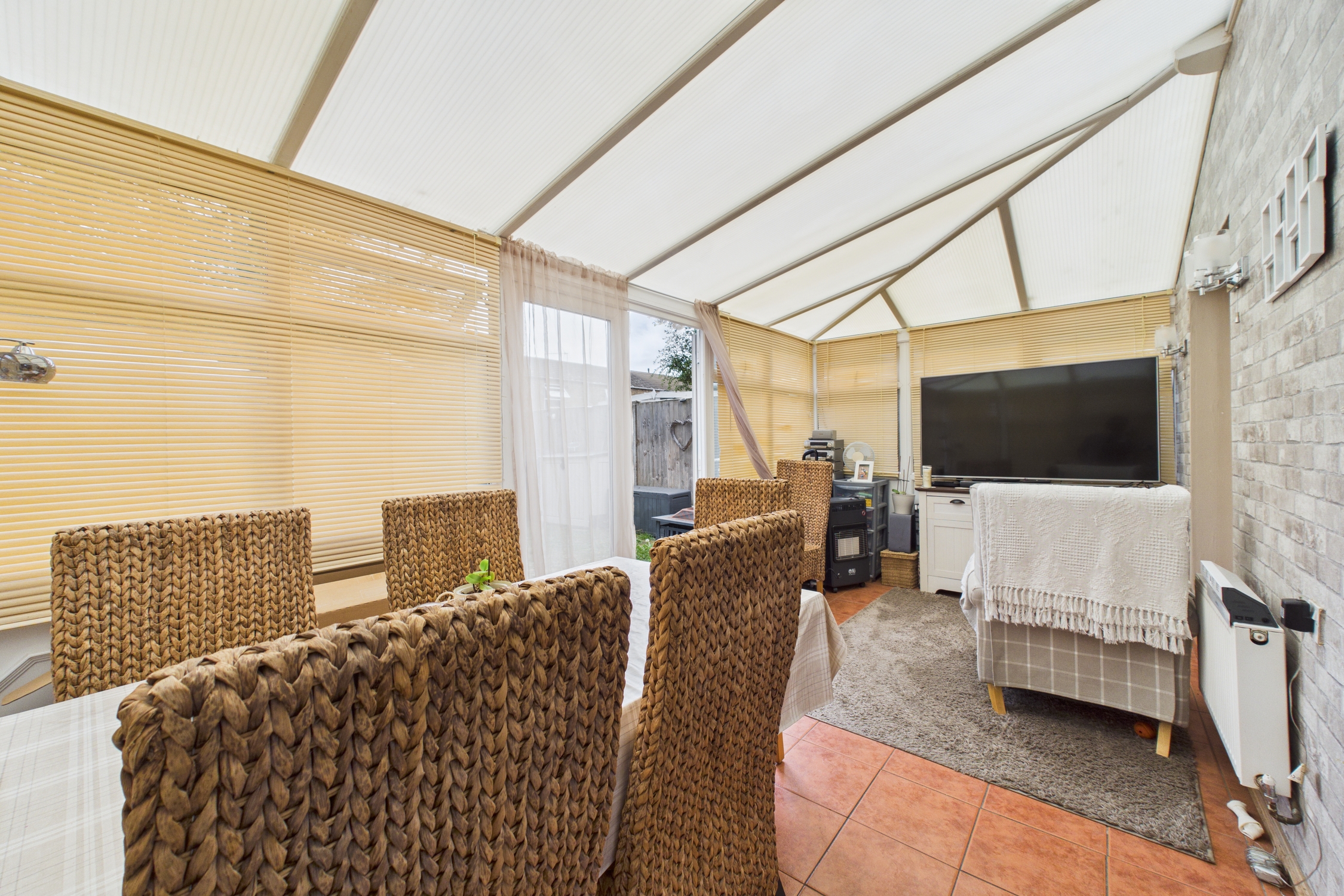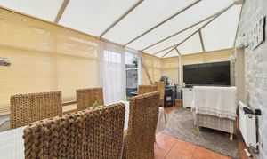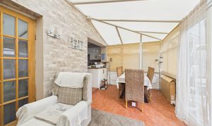 Windows to all aspects, with radiator, tiled flooring, and French doors to rear garden, and lounge / diner.