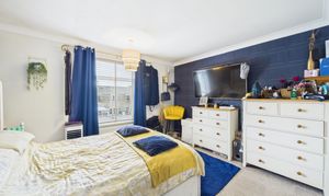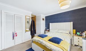 Window to rear, built-in wardrobes / storage, with radiator and carpet flooring.