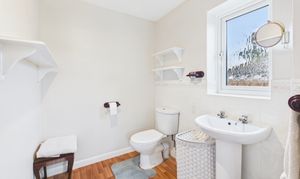 Entered under a storm canopy, the ground floor offers an entrance hall with stairs to the first floor and a cloakroom, a sitting room with bay window, an electric fireplace and double doors in the dining room with a conservatory beyond. The kitchen/breakfast room is equipped with a range of units, a double oven, hob with extractor, fridge/freezer, under counter freezer, dishwasher and an integrated microwave. Completing the ground floor is the utility room fitted with units, a washing machine, tumble dryer, the wall mounted gas-fired boiler and a part glazed door into the side access.