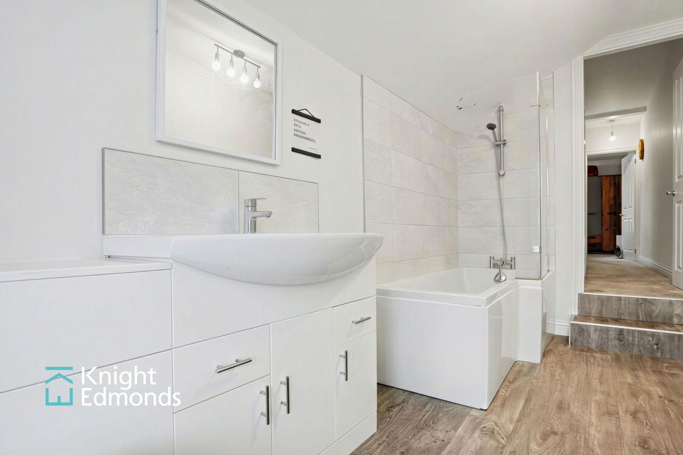 The first floor comprises two well proportioned bedrooms, including a generous main bedroom and a second bedroom ideal for guests, a home office or a child’s room. The accommodation is completed by a modern family bathroom, finished in a clean, contemporary style.