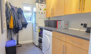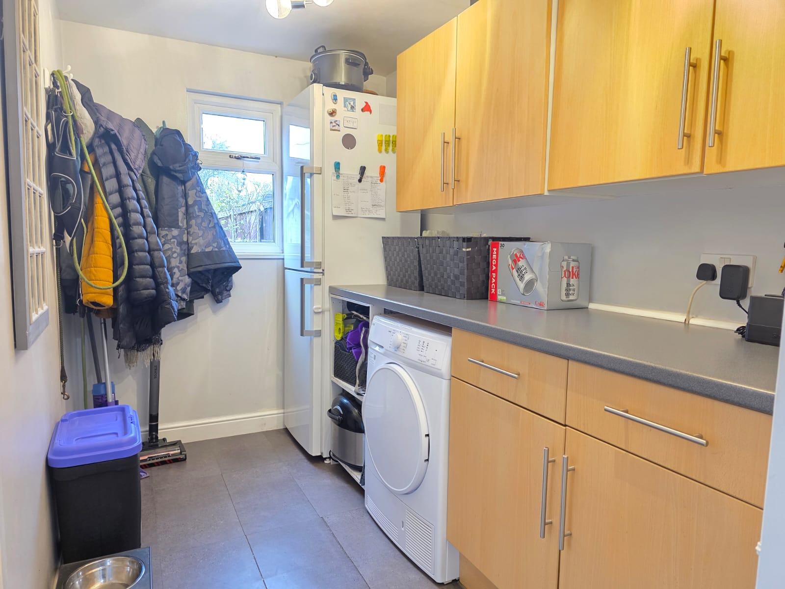This includes wall and base units with rollover worktop, space for a tumble dryer, space for an upright fridge/freezer unit, tiled flooring and UPVC double glazed window.