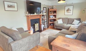 The formal lounge includes hard wood flooring, feature fireplace with wood surround and tiled hearth, TV connectivity, picture rails, under-stair storage, radiator and two UPVC double glazed window.