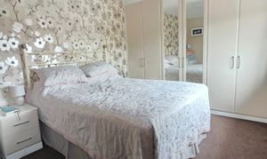 The master bedroom includes carpet flooring, radiator, integrated wardrobes and UPVC double glazed window.