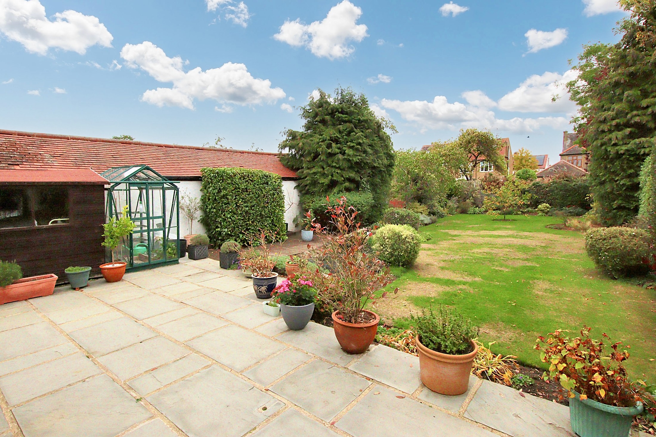 The property has a lovely rear garden with a leafy and secluded outlook. There is a large patio area perfect for outdoor gatherings in the summer months, and a large lawn surrounded by well-stocked flower and shrub borders. There is also an outside WC, a door to the garage, and gated side access.