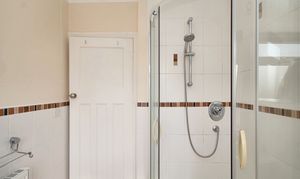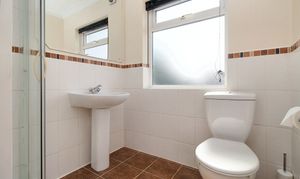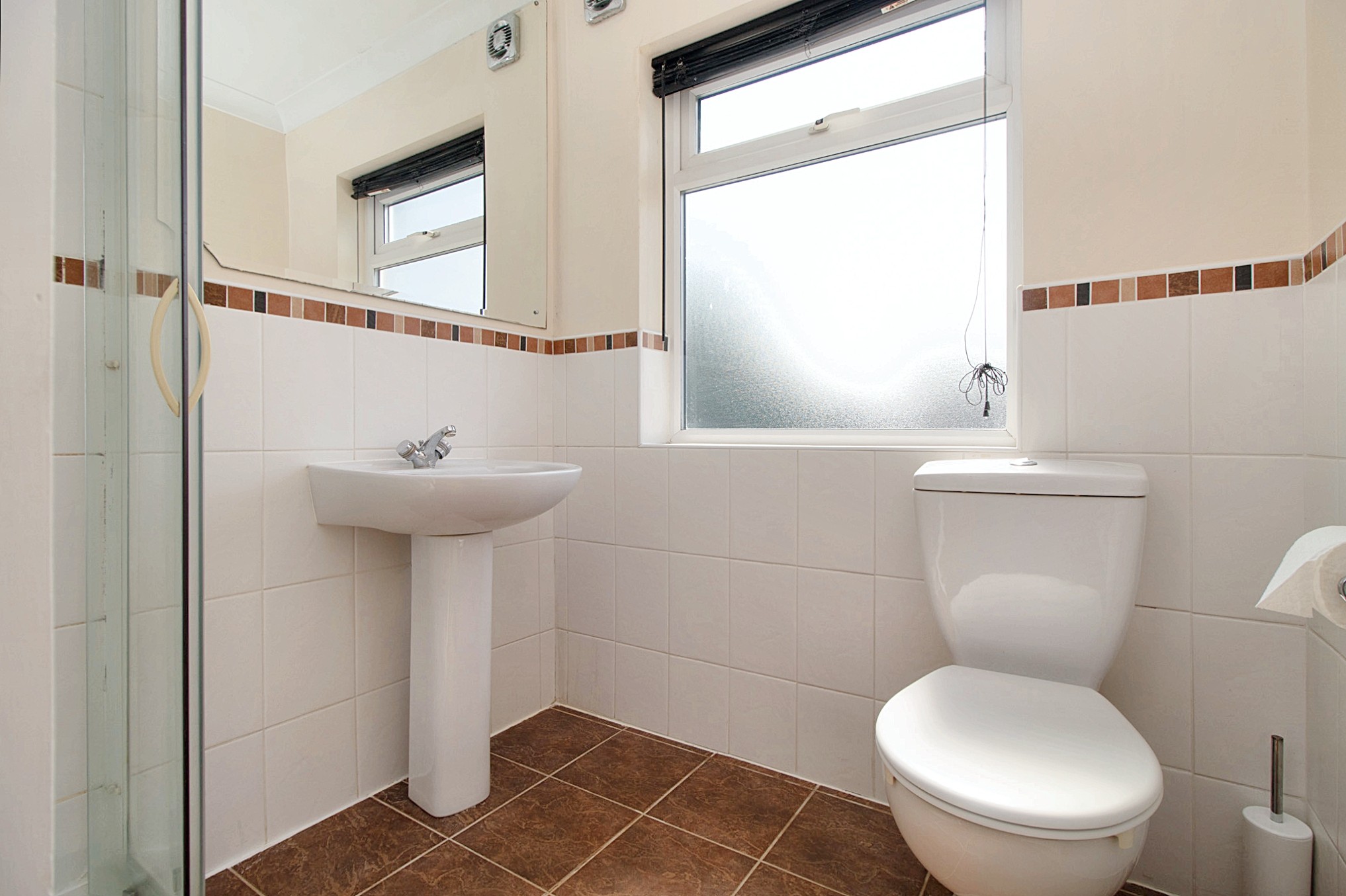 With tiled flooring, shower cubicle, WC, wash hand pedestal basin, radiator and double glazed window.