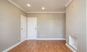 With laminate flooring, radiator, stairs leading to the first floor and door leading to the lounge.