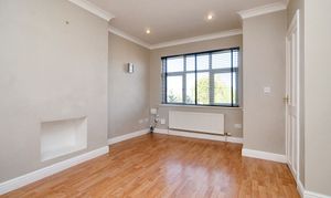 With laminate flooring, radiator, double glazed window and door leading to the kitchen.