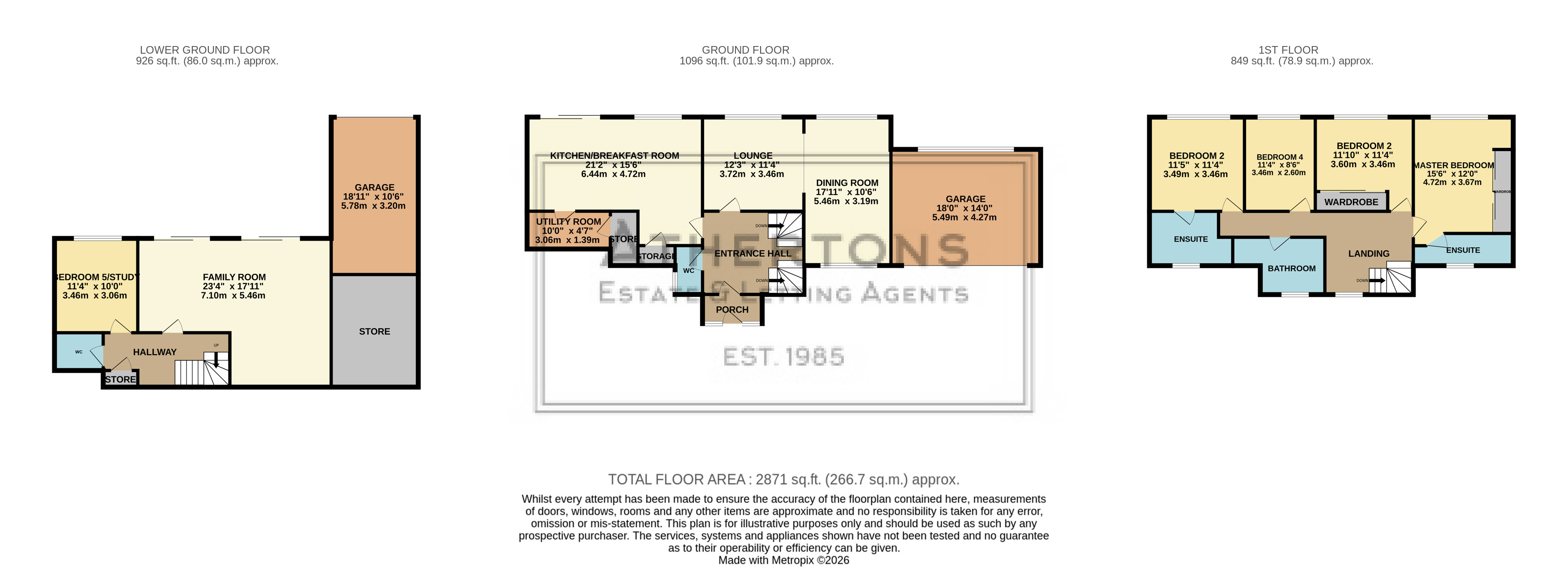 The first floor provides four generous double bedrooms, two of which benefit from luxurious en-suite facilities, complemented by a stylish family bathroom.