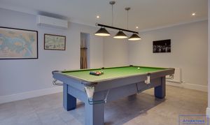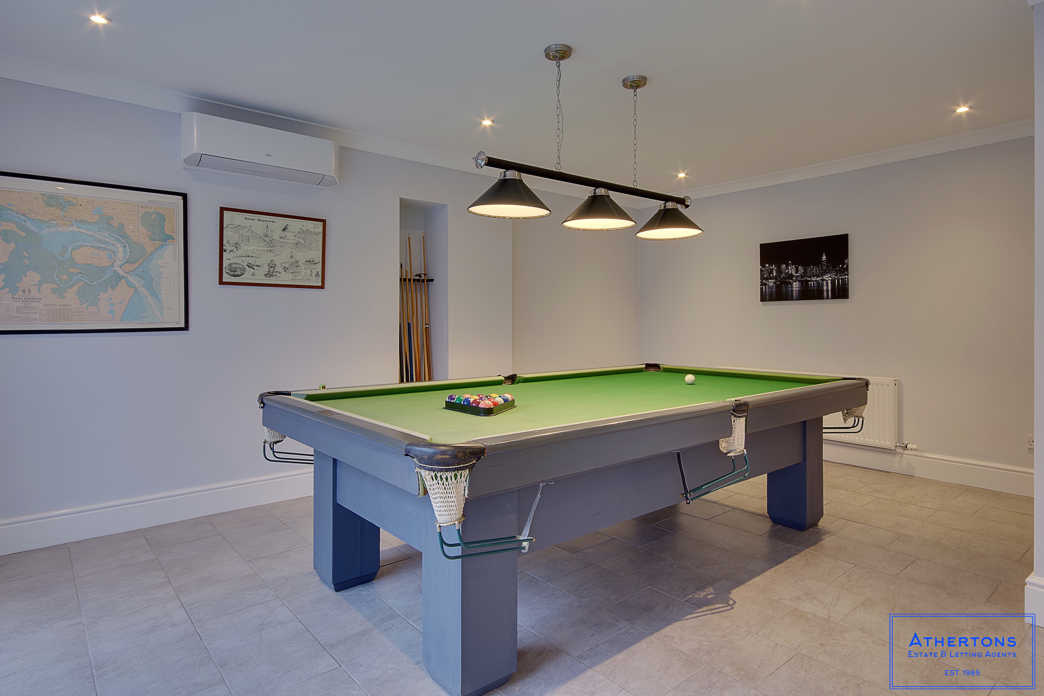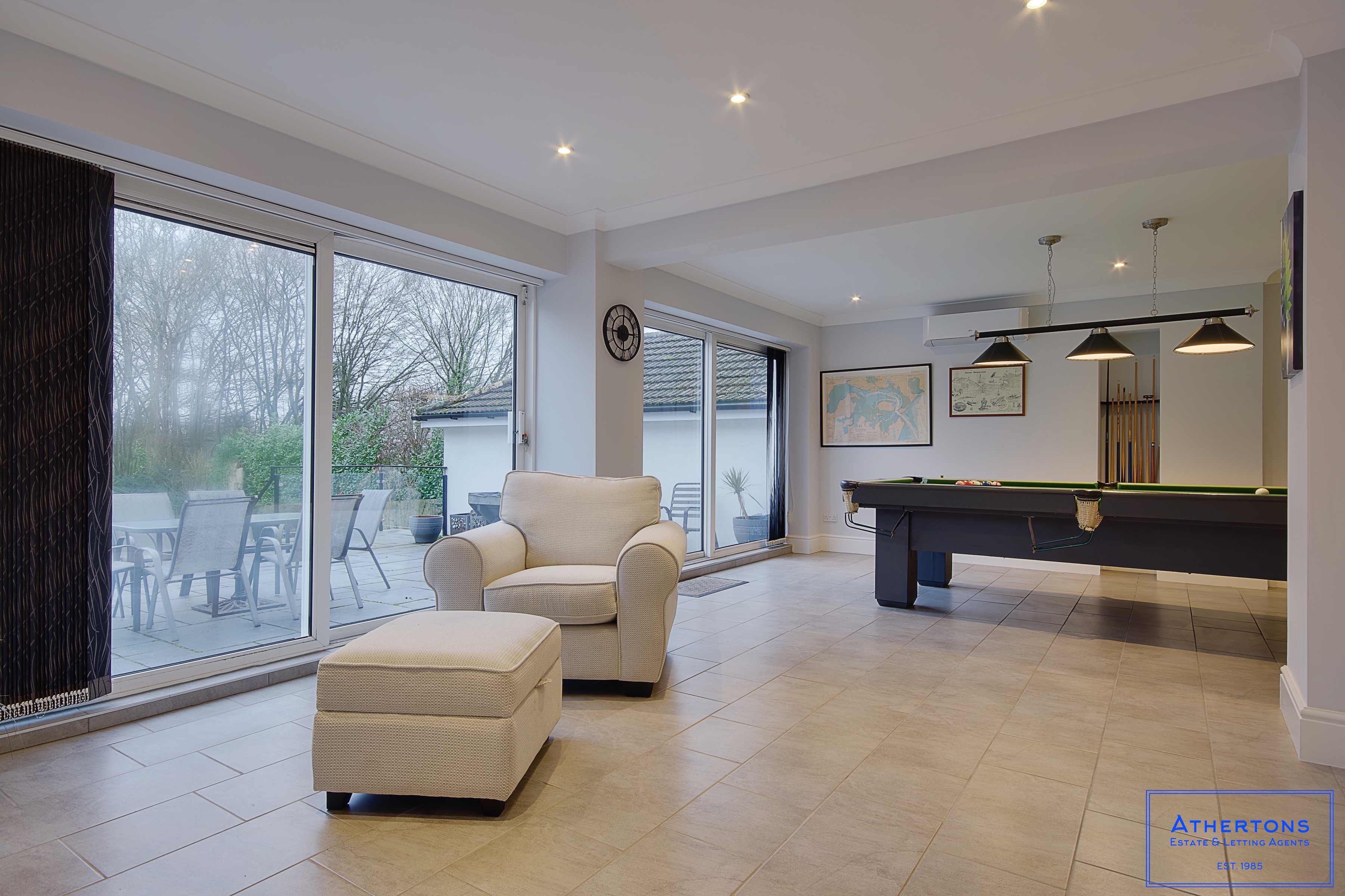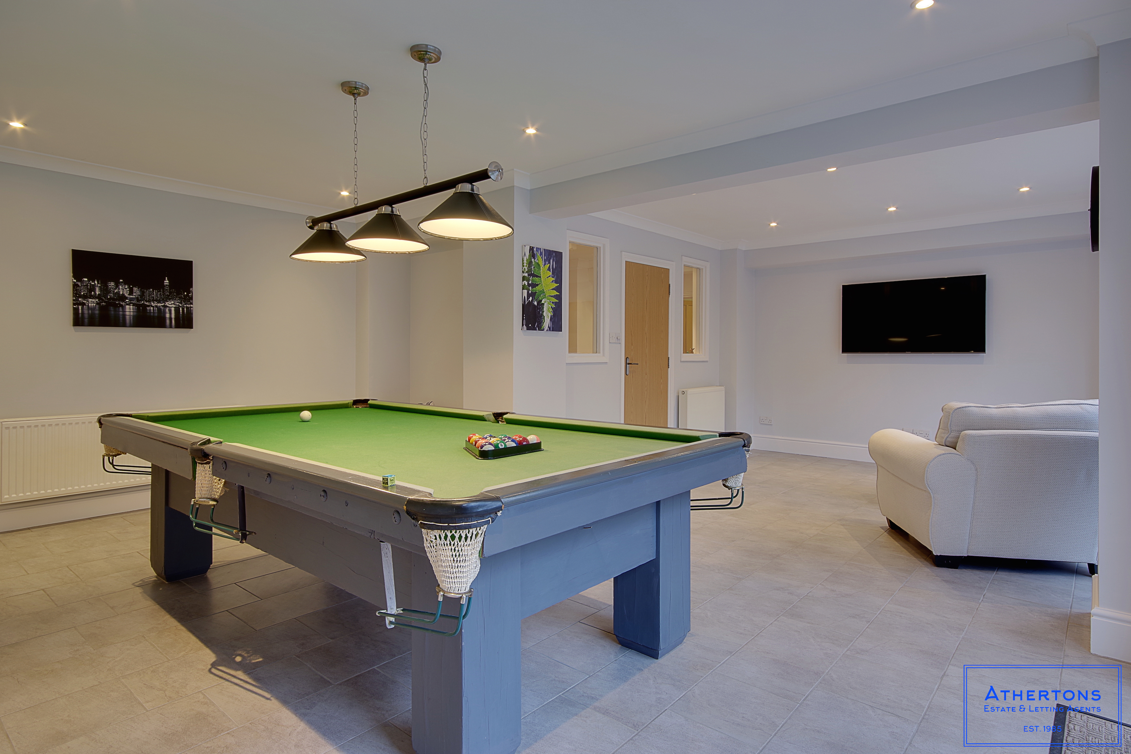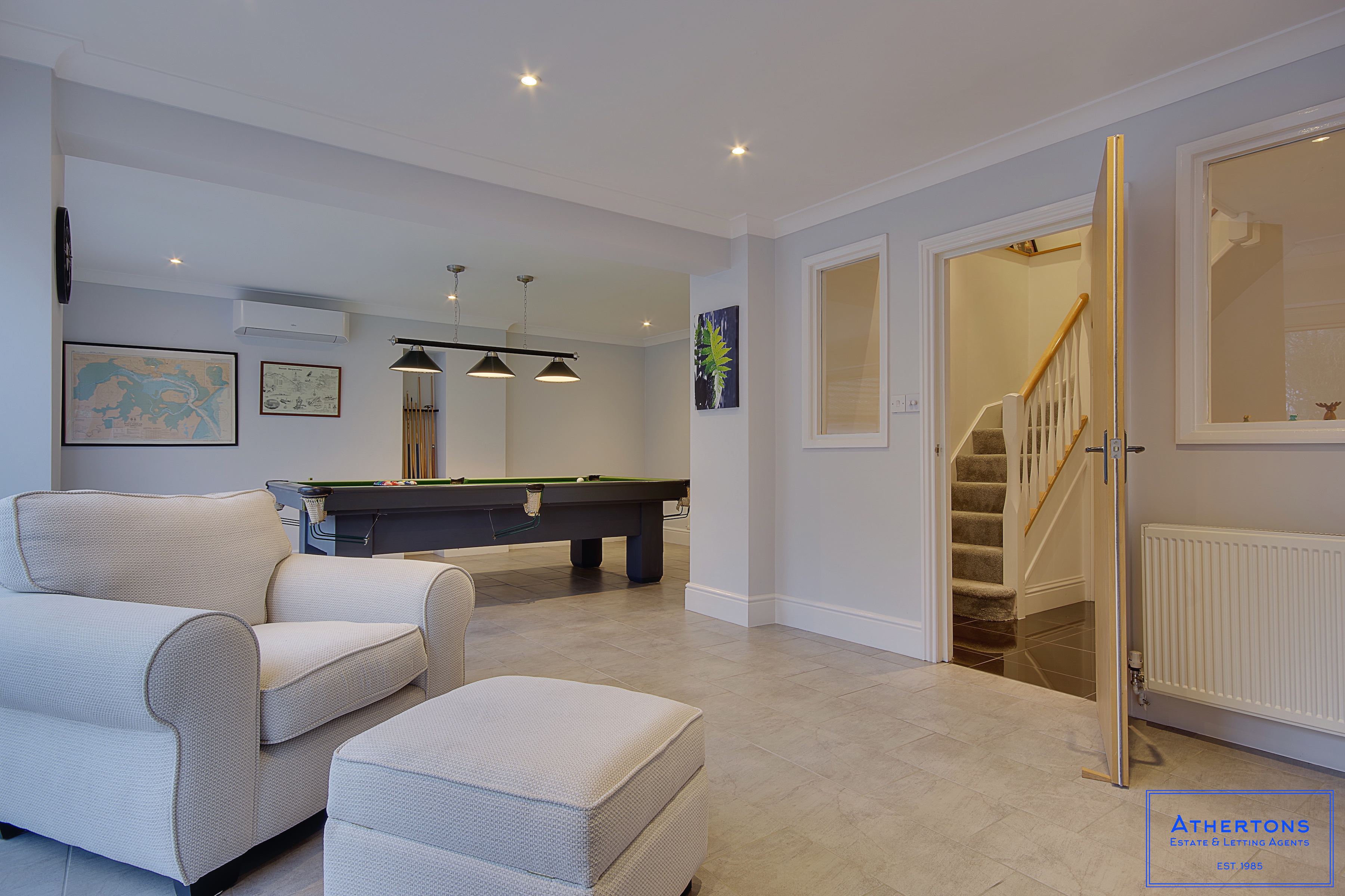 The lower level adds excellent versatility, comprising a substantial games room, a study, and a cloakroom. This floor offers fantastic potential to be converted into a self-contained apartment or annexe, ideal for extended family or dependent relatives.