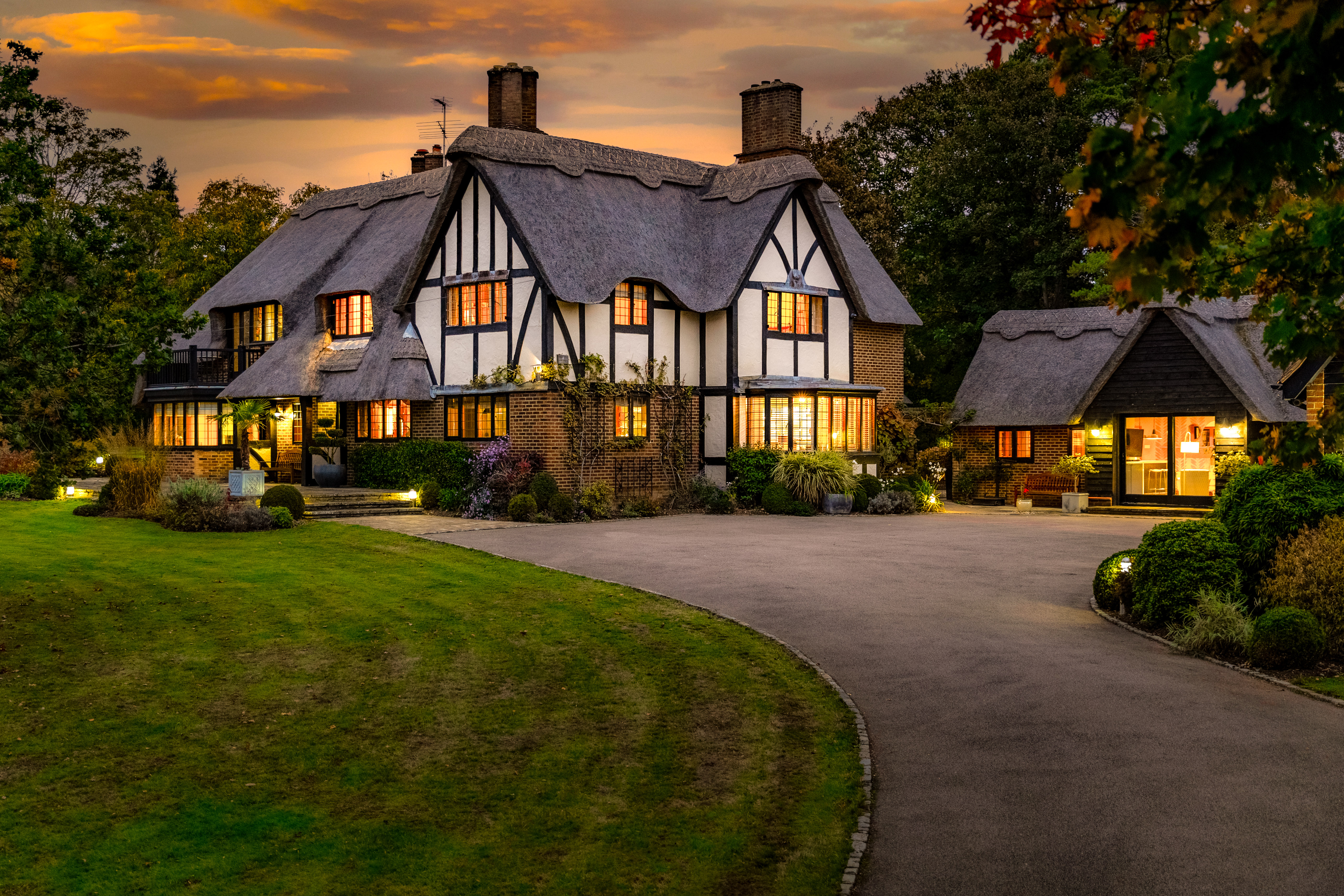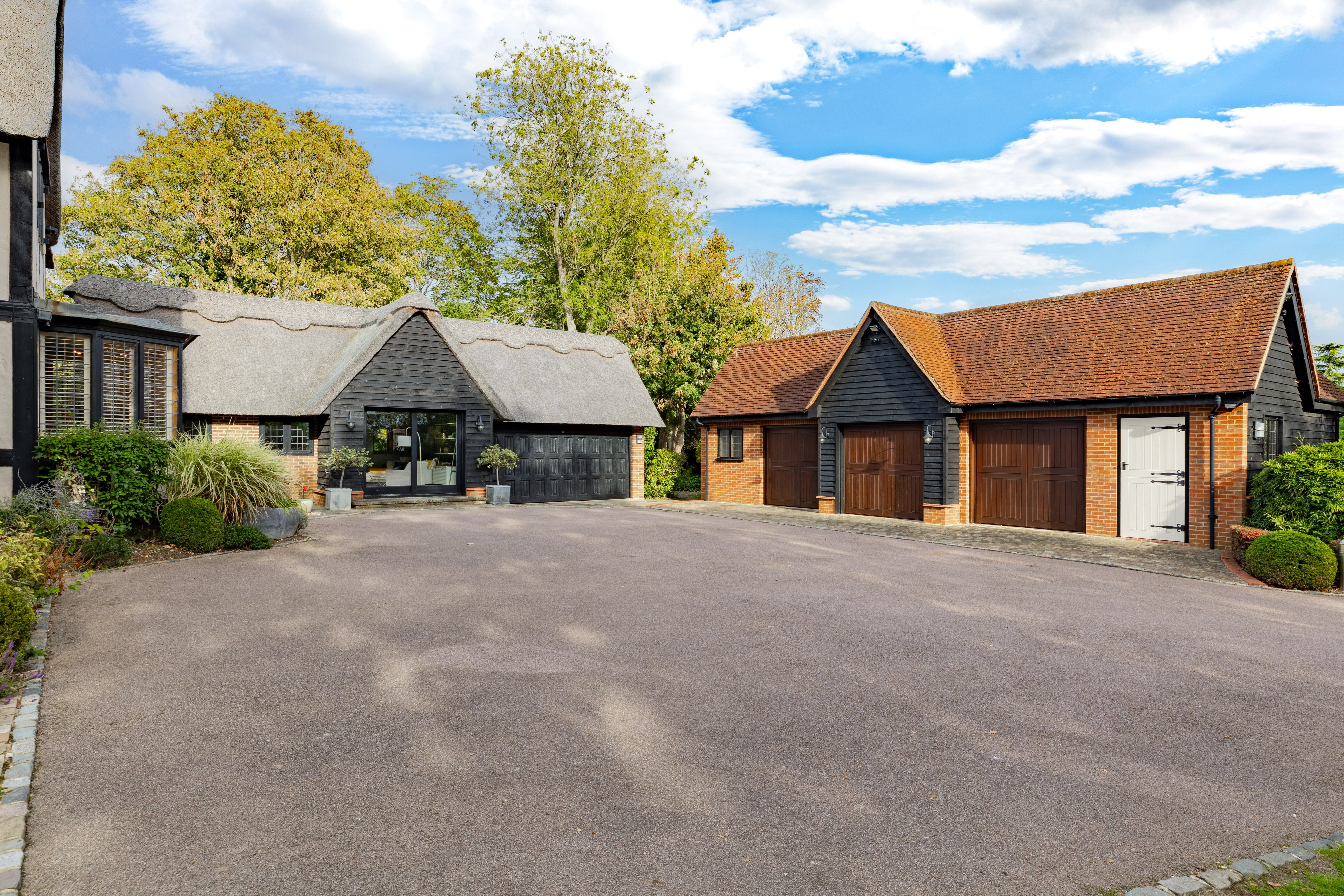 An exceptional thatched residence of over 7,000 sq. ft., set within beautiful grounds in one of Letchworth Garden City’s most desirable addresses. This substantial six-bedroom home, including a self-contained one-bedroom annexe, offers a unique blend of characterful architecture, generous proportions, and luxurious modern amenities — including an indoor swimming pool and extensive garaging.
