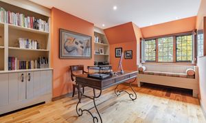 Upstairs, the principal bedroom suite is a true retreat, featuring a private balcony, large dressing room, and an en-suite four-piece bathroom. Bedrooms two and three are spacious doubles, both with fitted wardrobes/storage, while bedroom four is ideal for guests or a nursery. The fifth bedroom is currently being used as a stylish home office with built-in storage units. Finally, a modern family bathroom completes the first floor, serving the bedrooms with style.