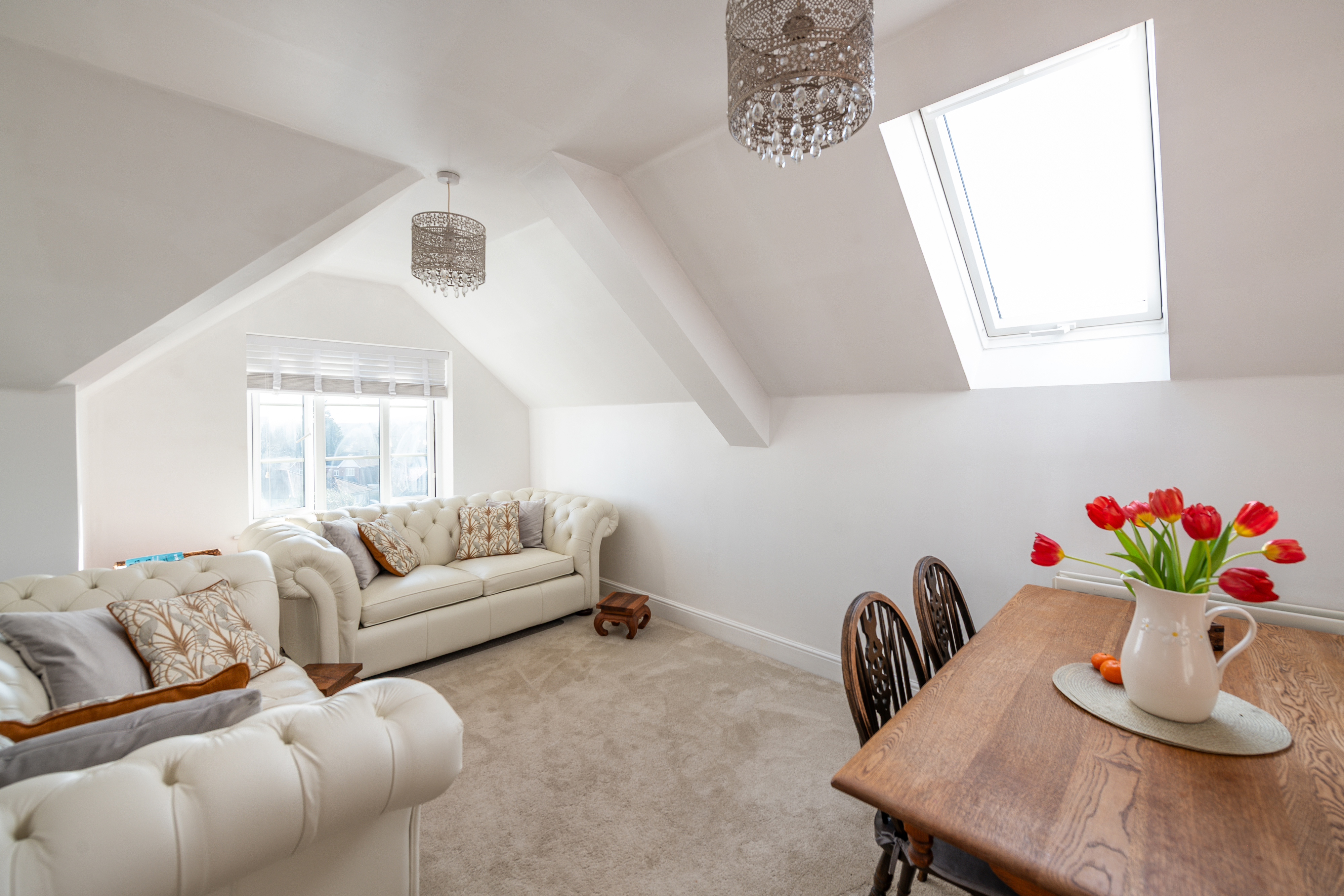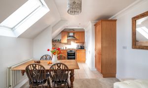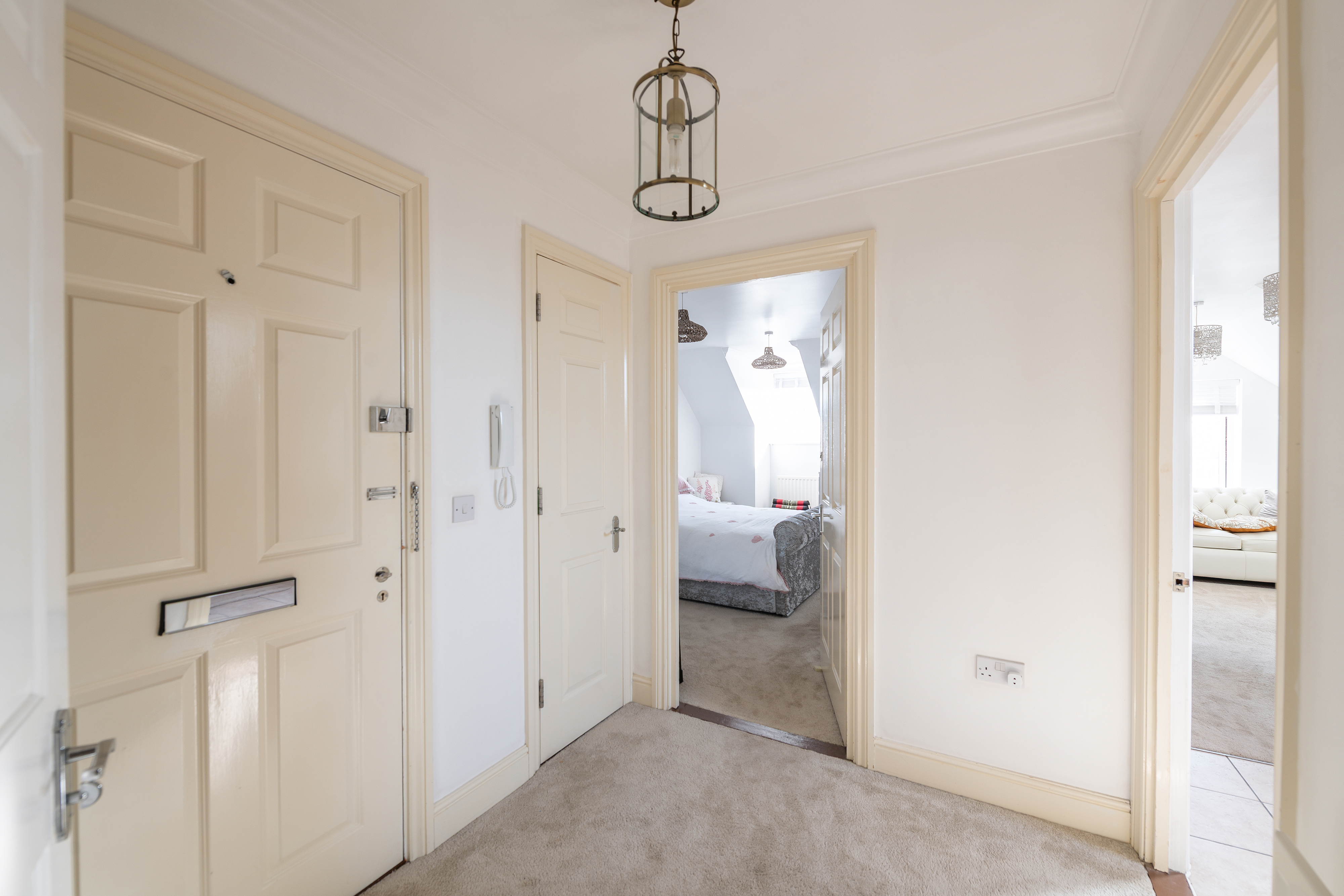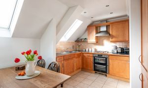 Situated on the top floor of a purpose-built development, the apartment benefits from elevated South facing views and abundant natural light throughout. The interior is in good condition, featuring a spacious living area, a modern fitted kitchen, a comfortable double bedroom with built in wardrobes, and a well-appointed bathroom.