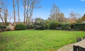 To the rear, the garden is notably wide with excellent depth, offering a private and secure outdoor space that will appeal to families and keen gardeners alike. Predominantly laid to lawn, it is framed by established shrubbery along the boundaries, providing a natural sense of enclosure and privacy. The house also benefits from an integral garage, with side access linking the front of the property to the garden, reinforcing both practicality and future flexibility.