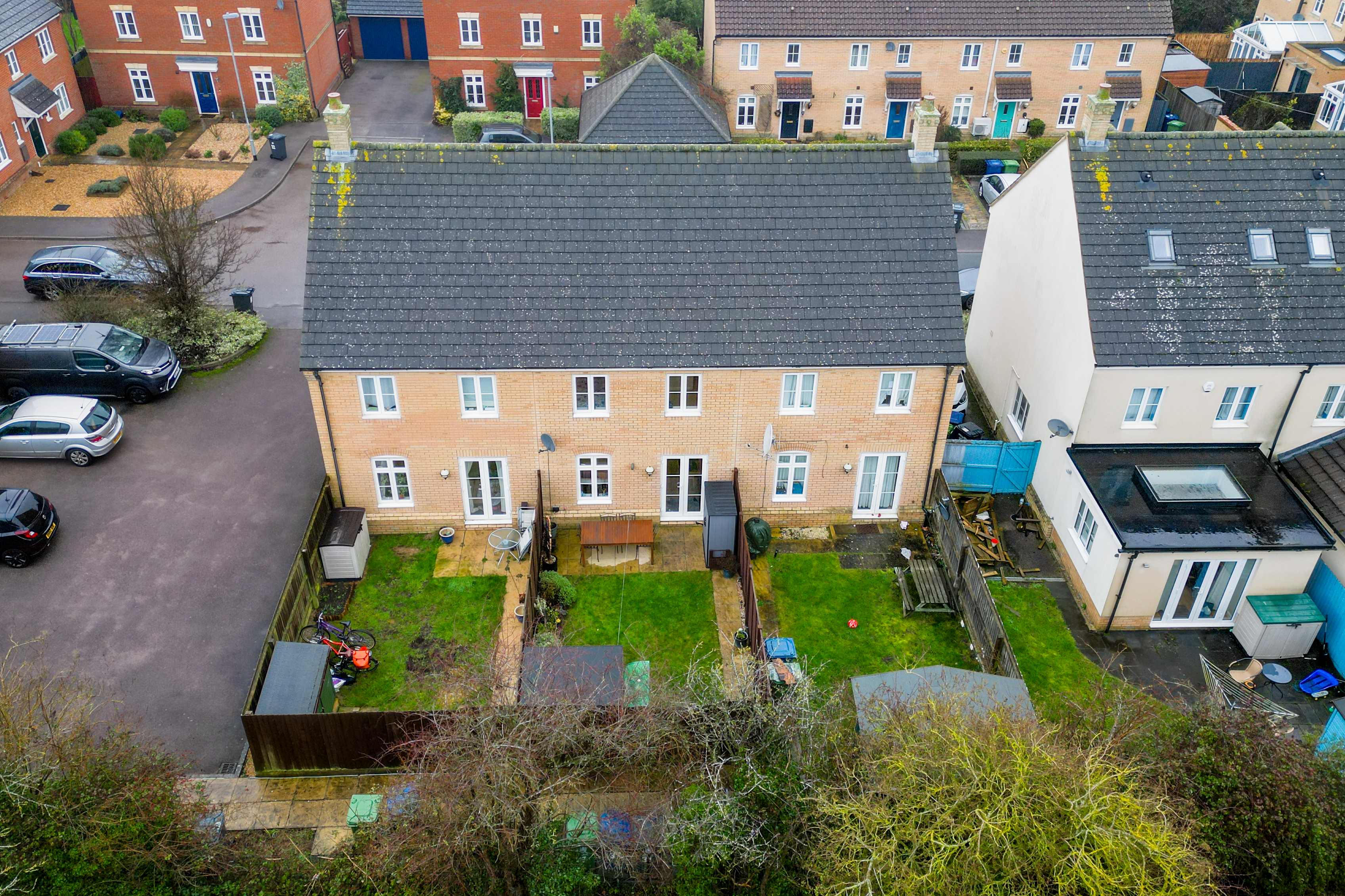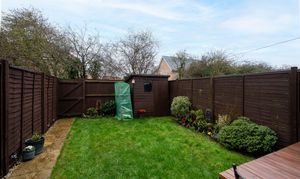 - Enclosed rear garden with patio, timber shed and two allocated parking spaces nearby