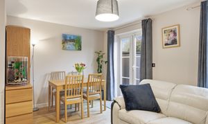 To the rear of the property is a spacious lounge/dining room, offering ample space for a six-seater dining table, useful understairs storage, and French doors opening directly onto the garden — ideal for both everyday family living and entertaining.