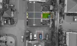 A pathway leads to rear access with paved storage space and the off-street parking area, where the property benefits from two designated parking spaces.