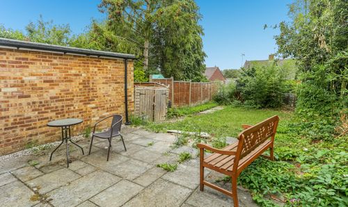 Large decked area and mostly laid to lawn, not overlooked and turns into a sun trap.