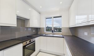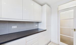Overlooking well-tended communal gardens, this modern kitchen benefits from plenty of work surface and storage space and integrated appliances.