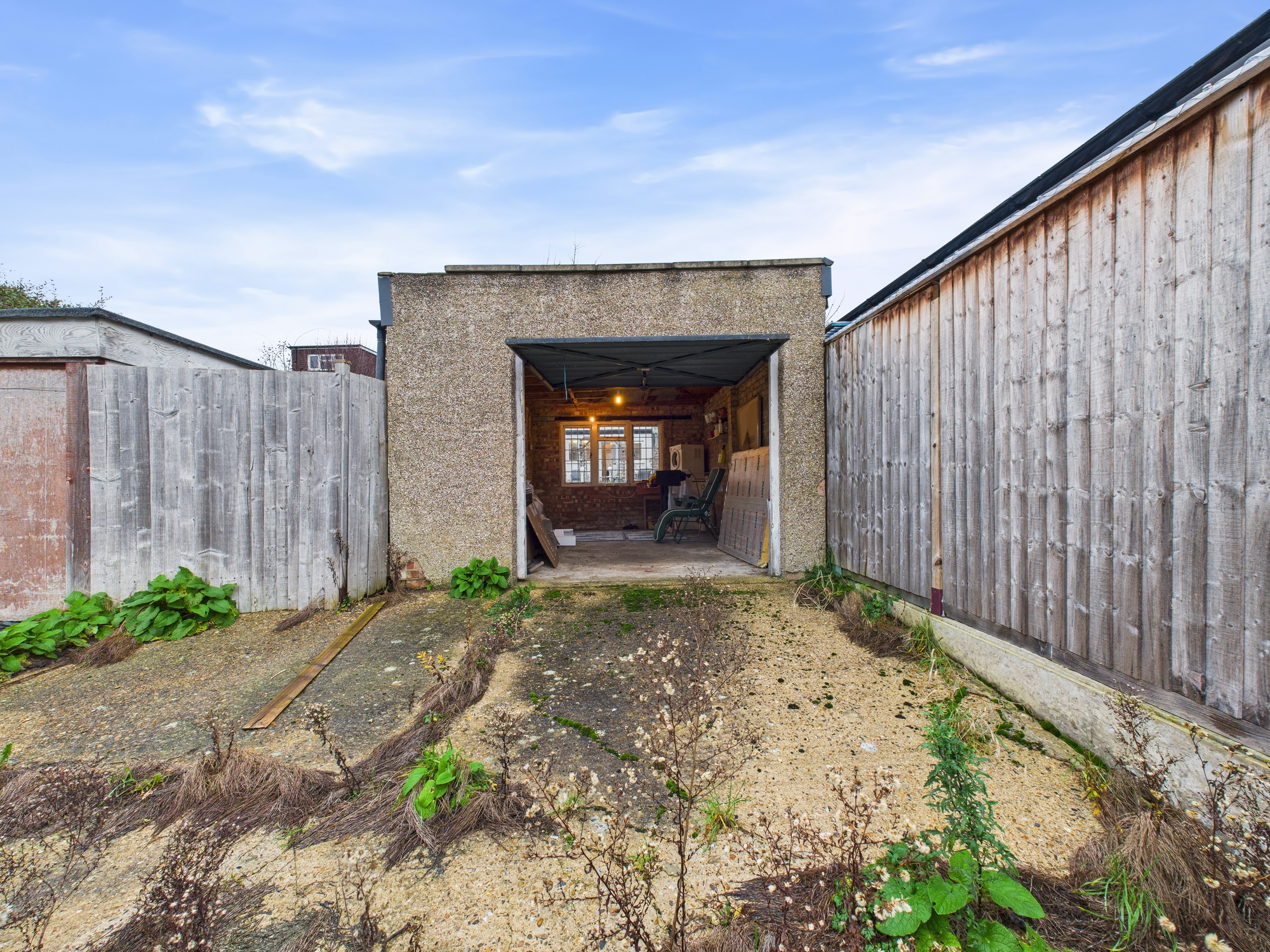 To the rear, a private garage accessed via a service road adds valuable parking or storage. While the property requires comprehensive updating and modernisation throughout, it presents an exciting chance for buyers to design and personalise a bespoke home in a highly convenient and sought-after location.