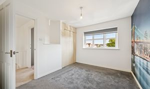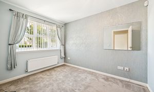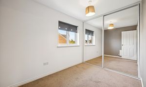 The second bedroom rivals the main in size and appeal, also featuring substantial fitted wardrobes and plenty of floor space for additional furnishings. The third bedroom is another well-balanced double, ideal for children, guests, or extended family, and includes integrated storage to maximize functionality.