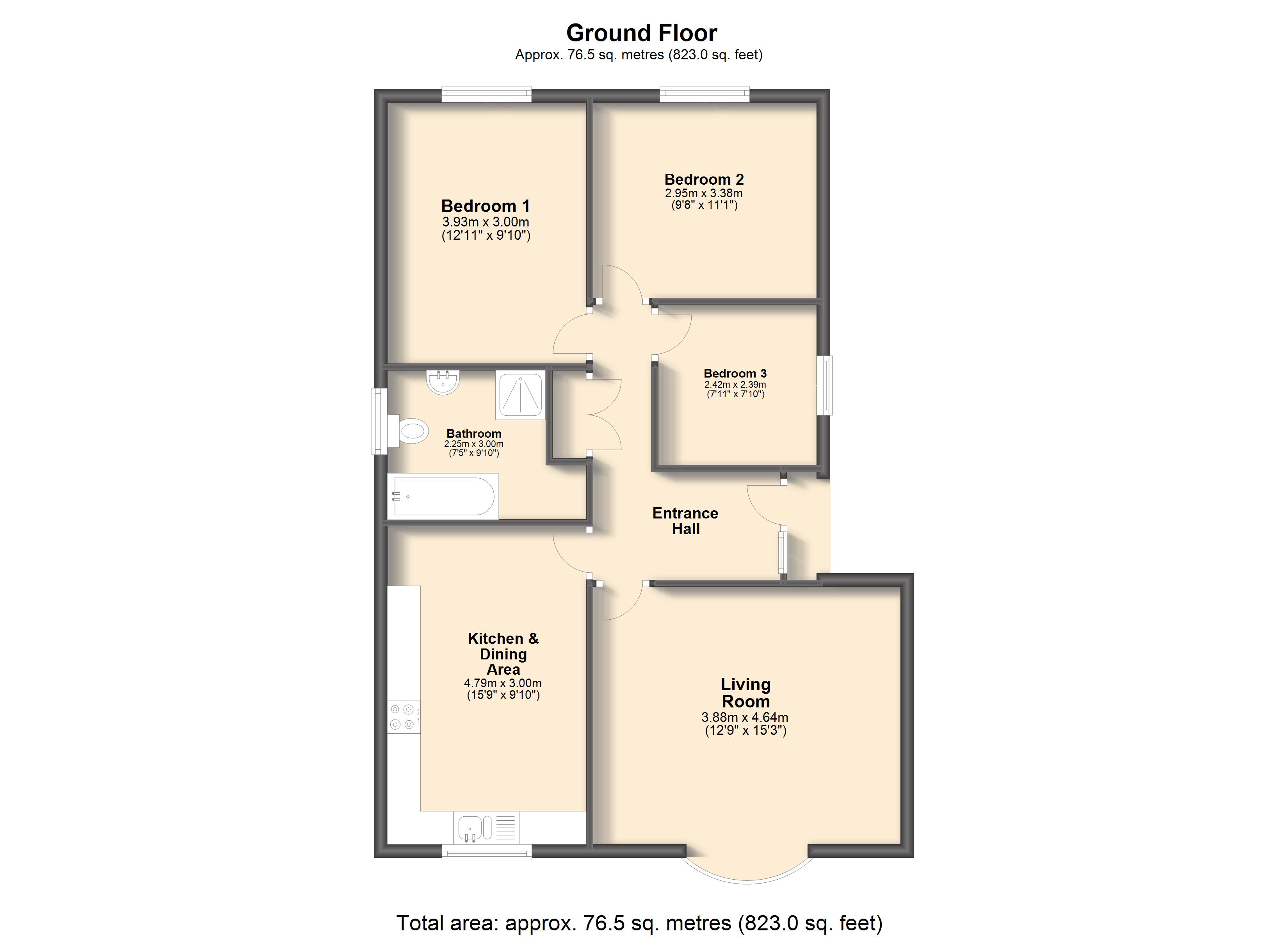 - Approx Sq Feet: 823 sqft