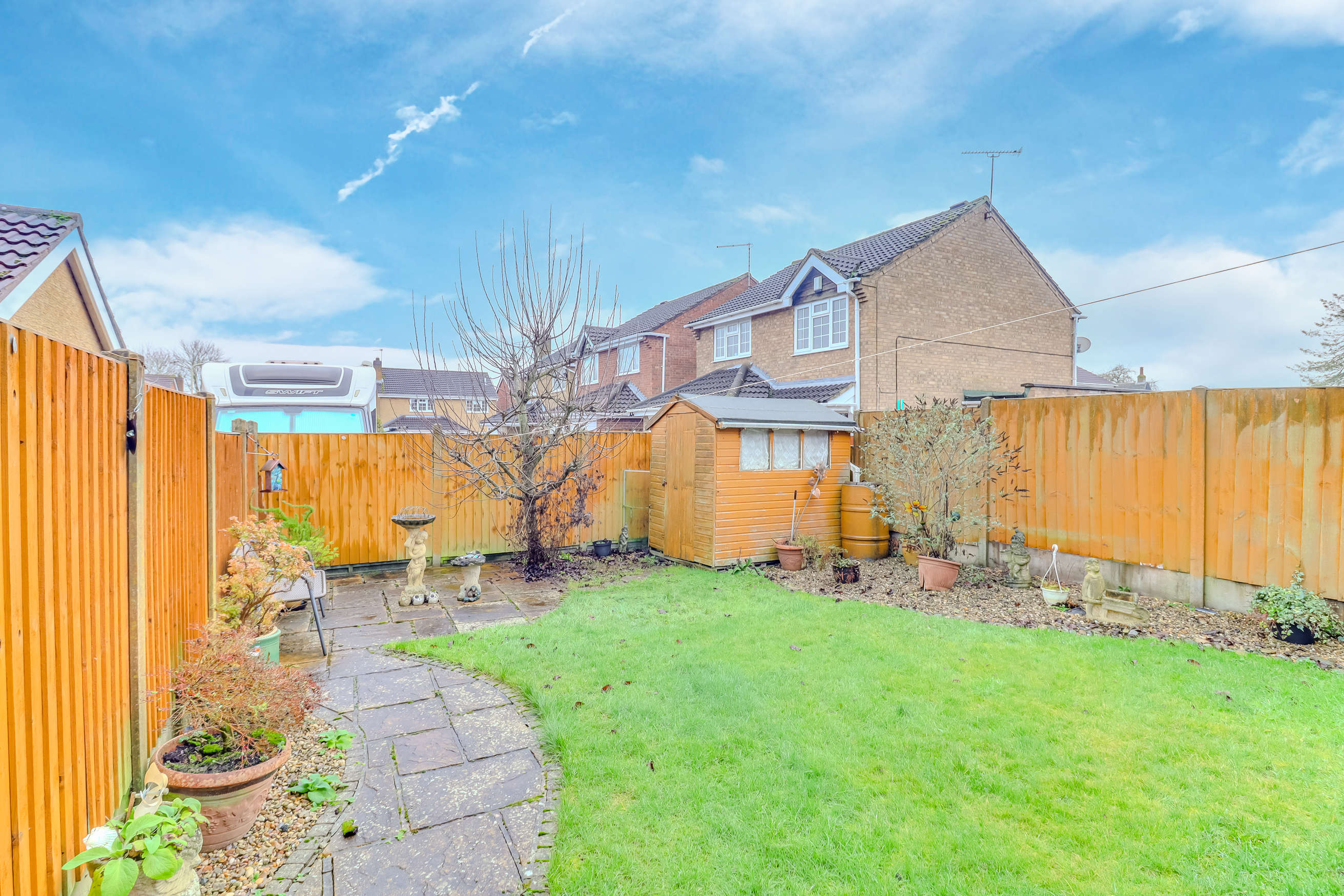Externally, to the front there is a lawned garden with a driveway adjacent and a brick built bin store. The rear gardens are mainly laid to lawn with paving, gravelled borders and a timber shed.