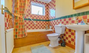 To the first floor there are three well proportioned bedrooms, all with fitted storage and there is a family bathroom with panelled bath with shower over, low flush WC and pedestal wash hand basin along with tiling to water sensitive areas.
