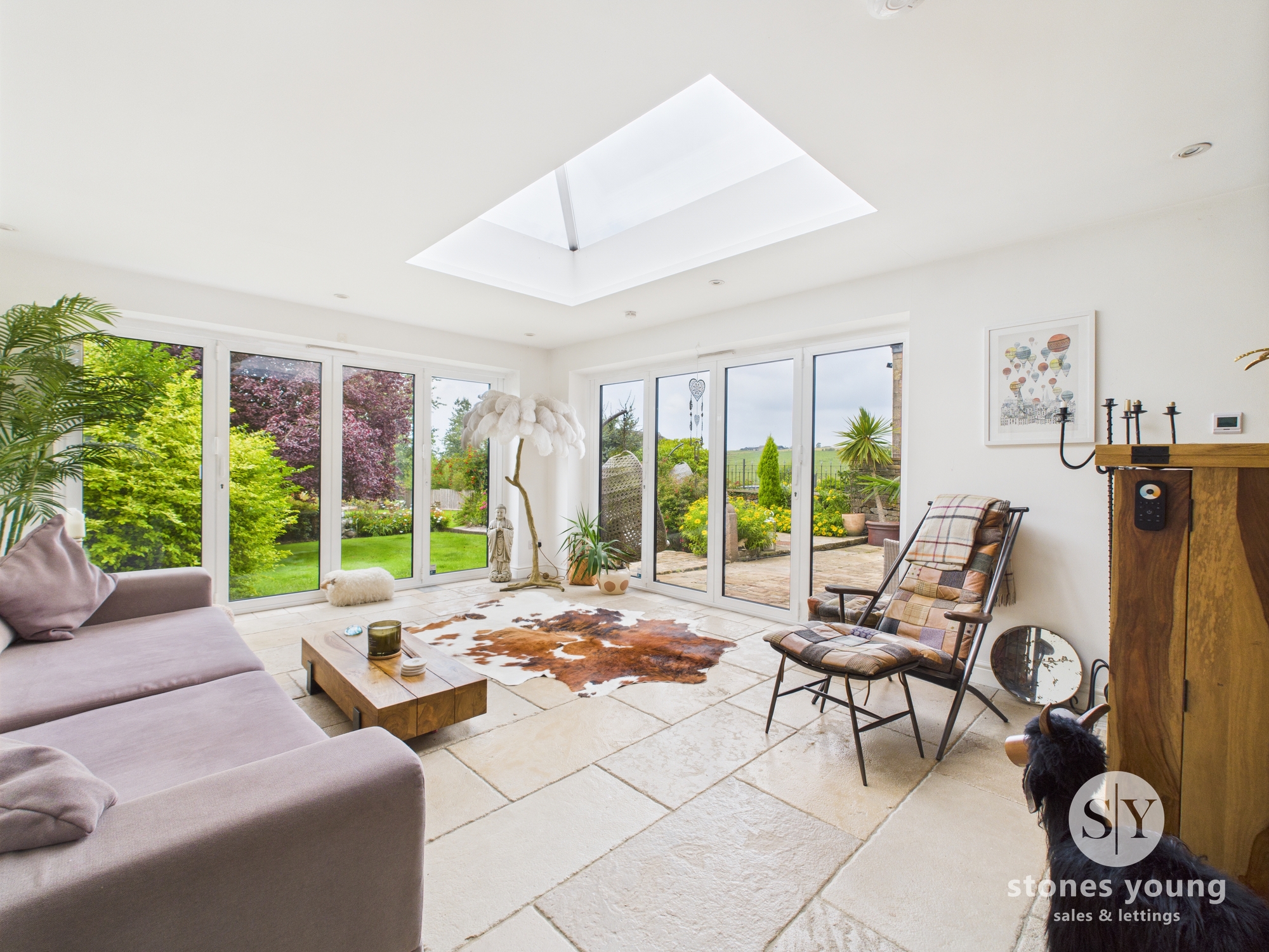 Stone flooring, roof lantern, uPVC double glazed bi-folding doors x 2, ceiling spots, underfloor heating.