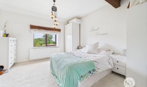 Carpet flooring, ceiling beams, uPVC double glazed window, panel radiator.