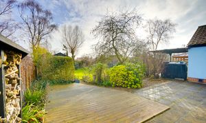 Externally, the property enjoys a generous frontage, with a shingled driveway leading to a double garage, providing ample parking and storage. To the rear, the established garden offers a high degree of privacy, with mature planting and lawned areas, creating a tranquil setting for relaxation or outdoor entertaining.