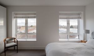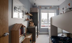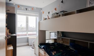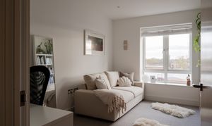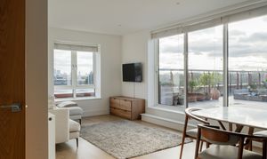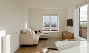 This top-floor penthouse apartment was completed in 2020 and sits within an attractive low-rise development. The home features three generous double bedrooms and a sunny open-plan living space that flows onto a private balcony with far-reaching views across east London – to Canary Wharf and the City and beyond. A luxurious ensuite and family bathroom, along with high-quality finishes throughout, add to the premium feel offered by this secluded urban retreat.