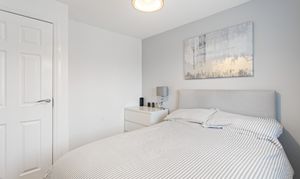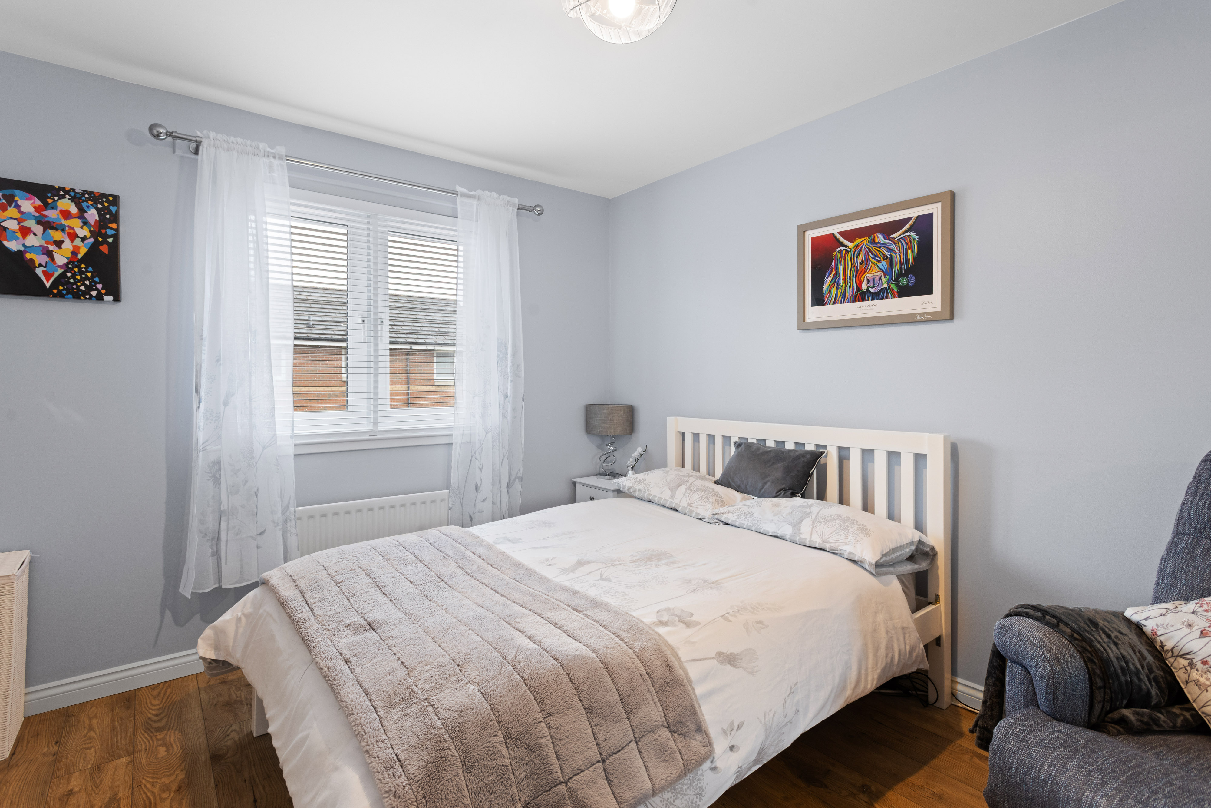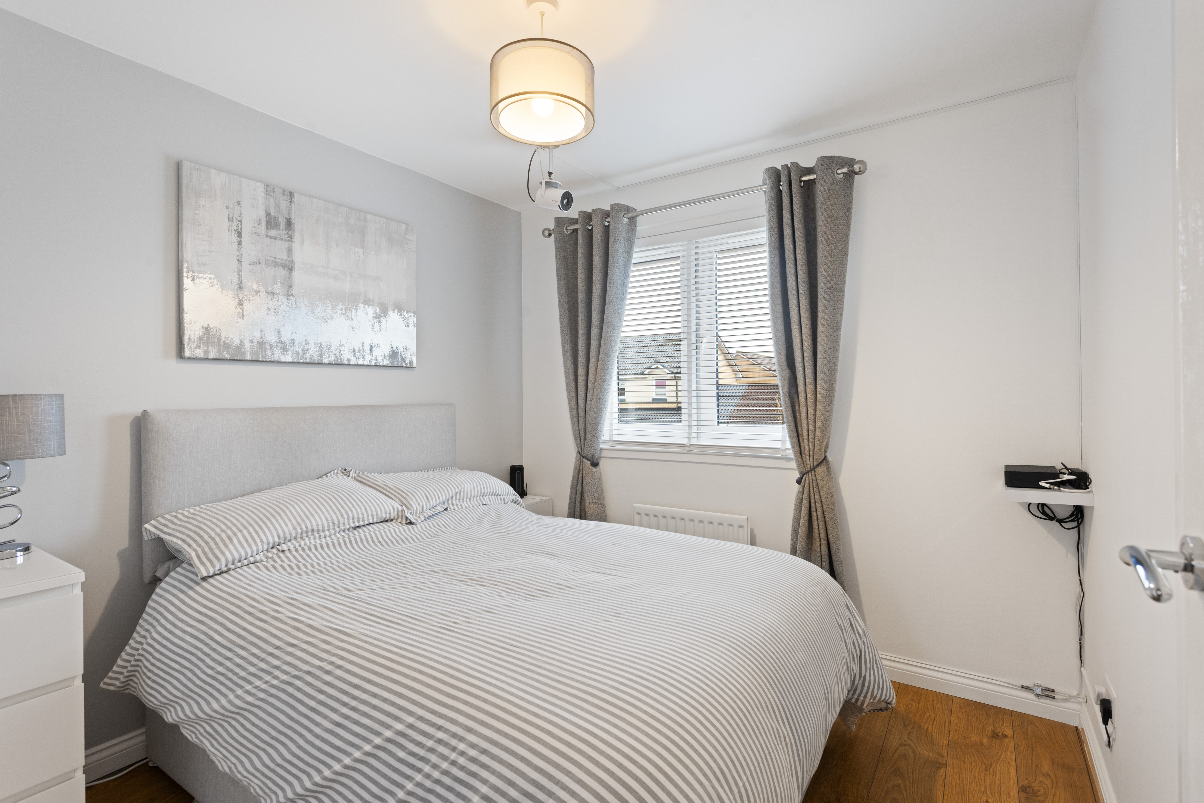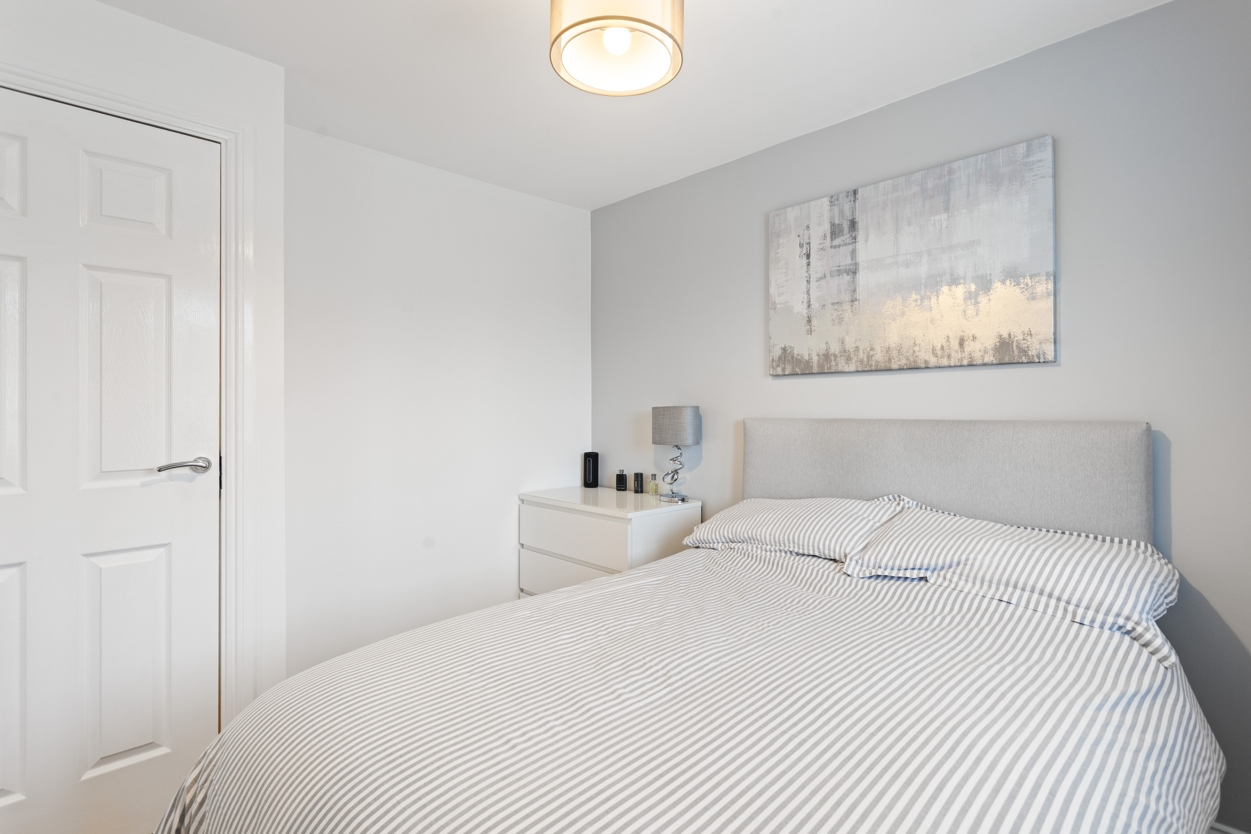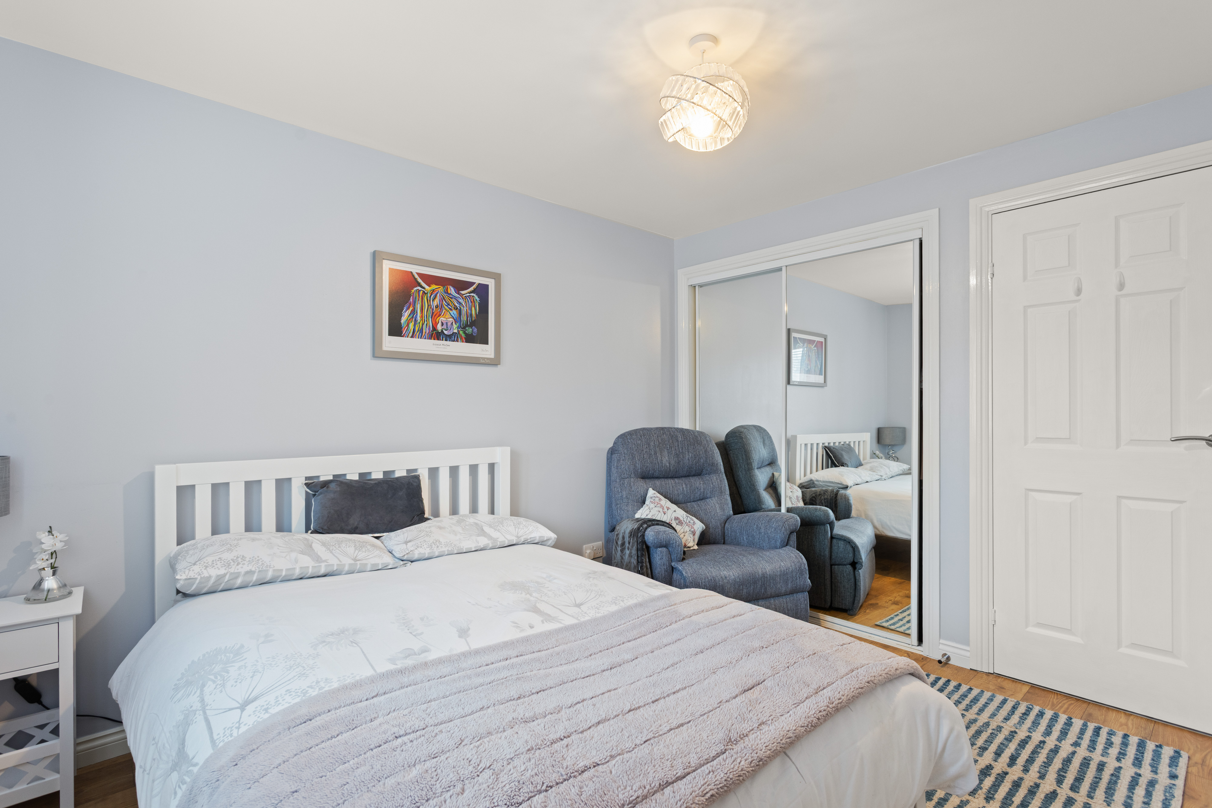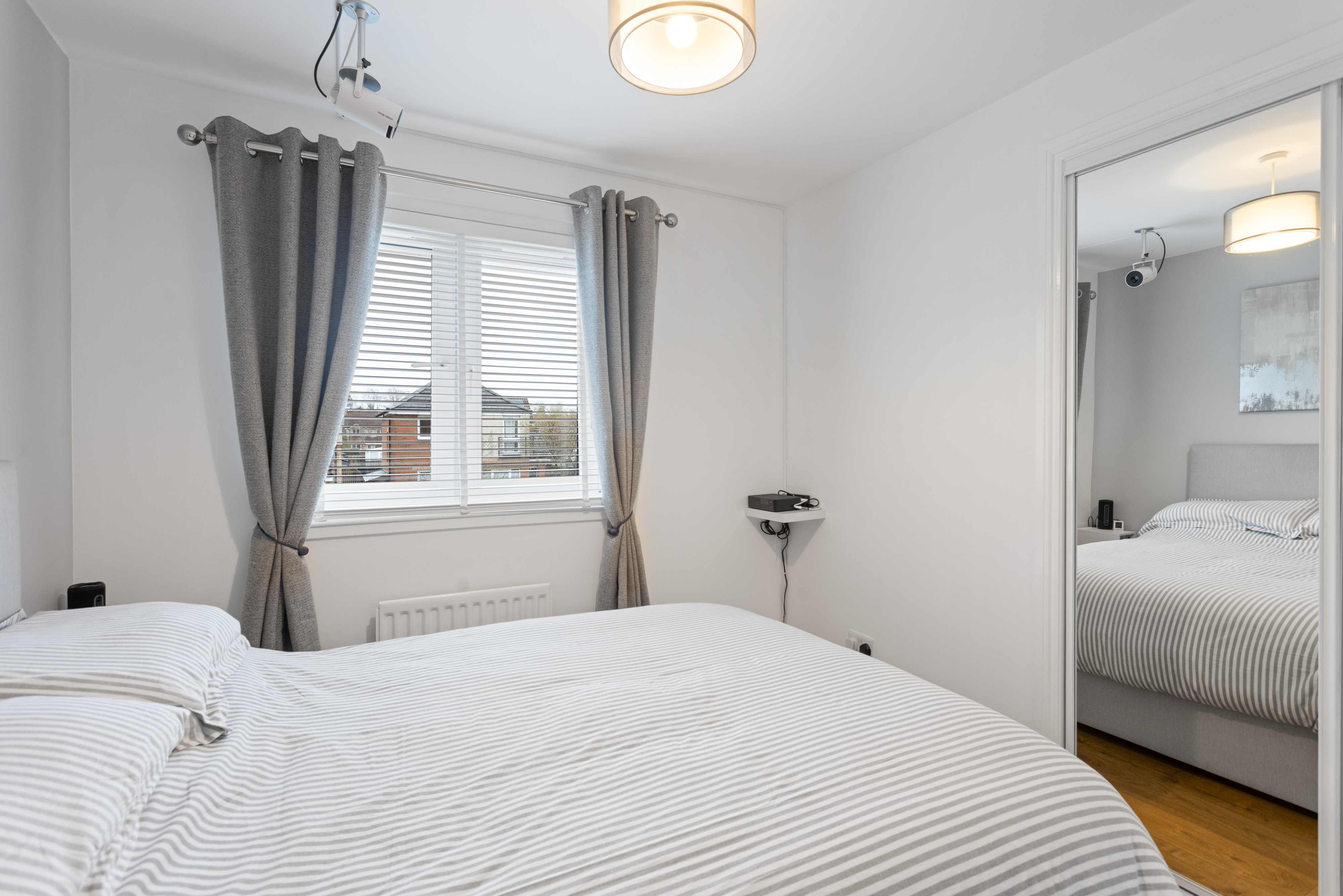 A spacious and comfortable master bedroom overlooking the rear garden, filled with natural light and a peaceful outlook. The room features built-in mirrored wardrobes, providing excellent storage while enhancing the sense of space. There is plenty of room for additional freestanding furniture, making it a versatile and relaxing retreat. Completing the suite is a stylish en suite, adding convenience and a touch of luxury.